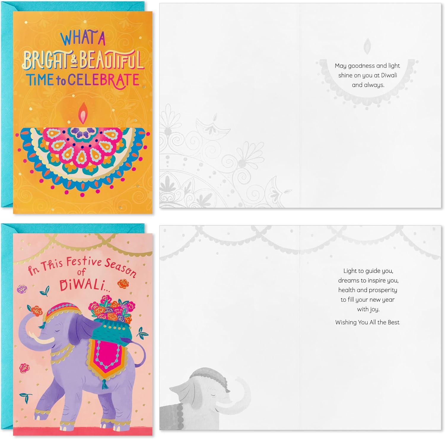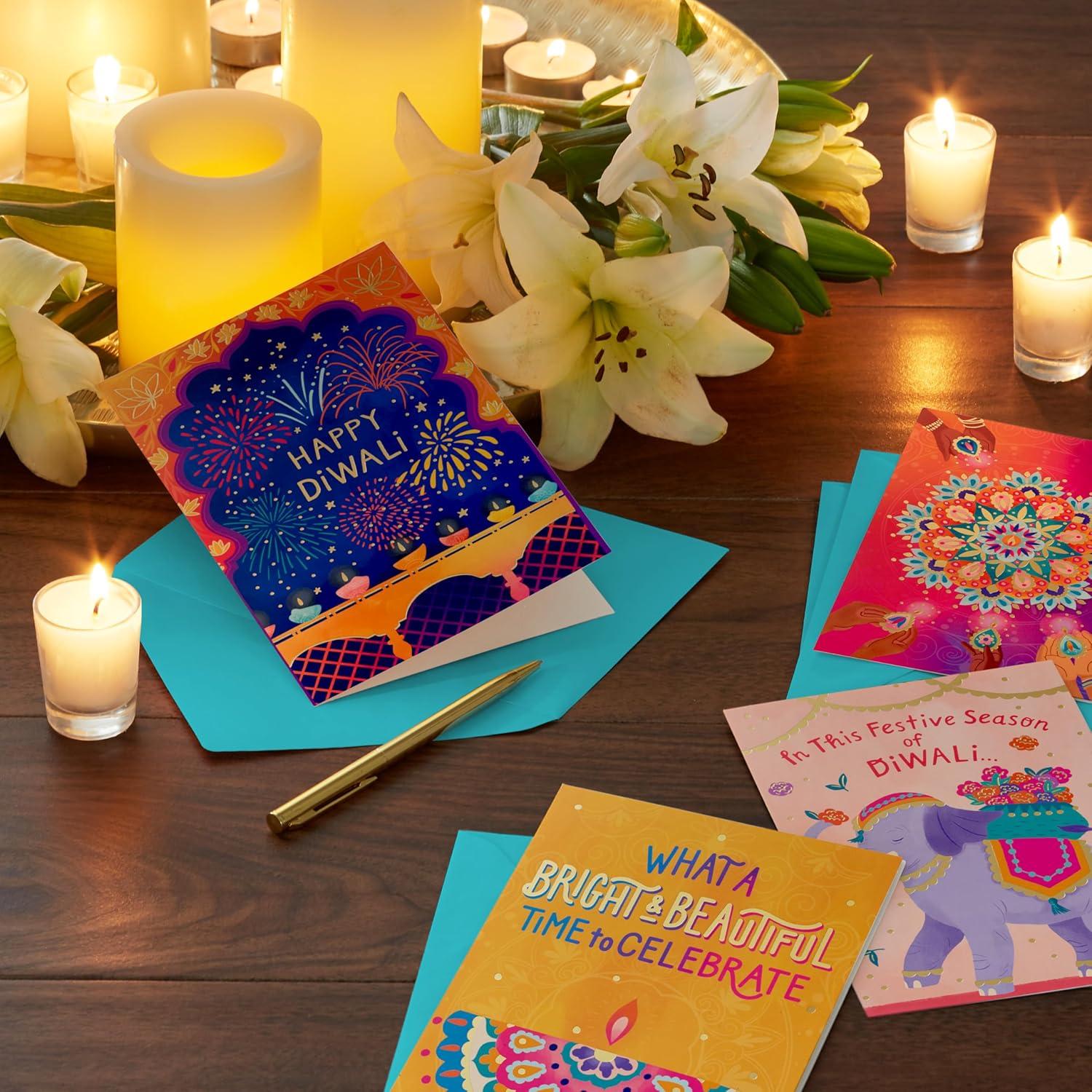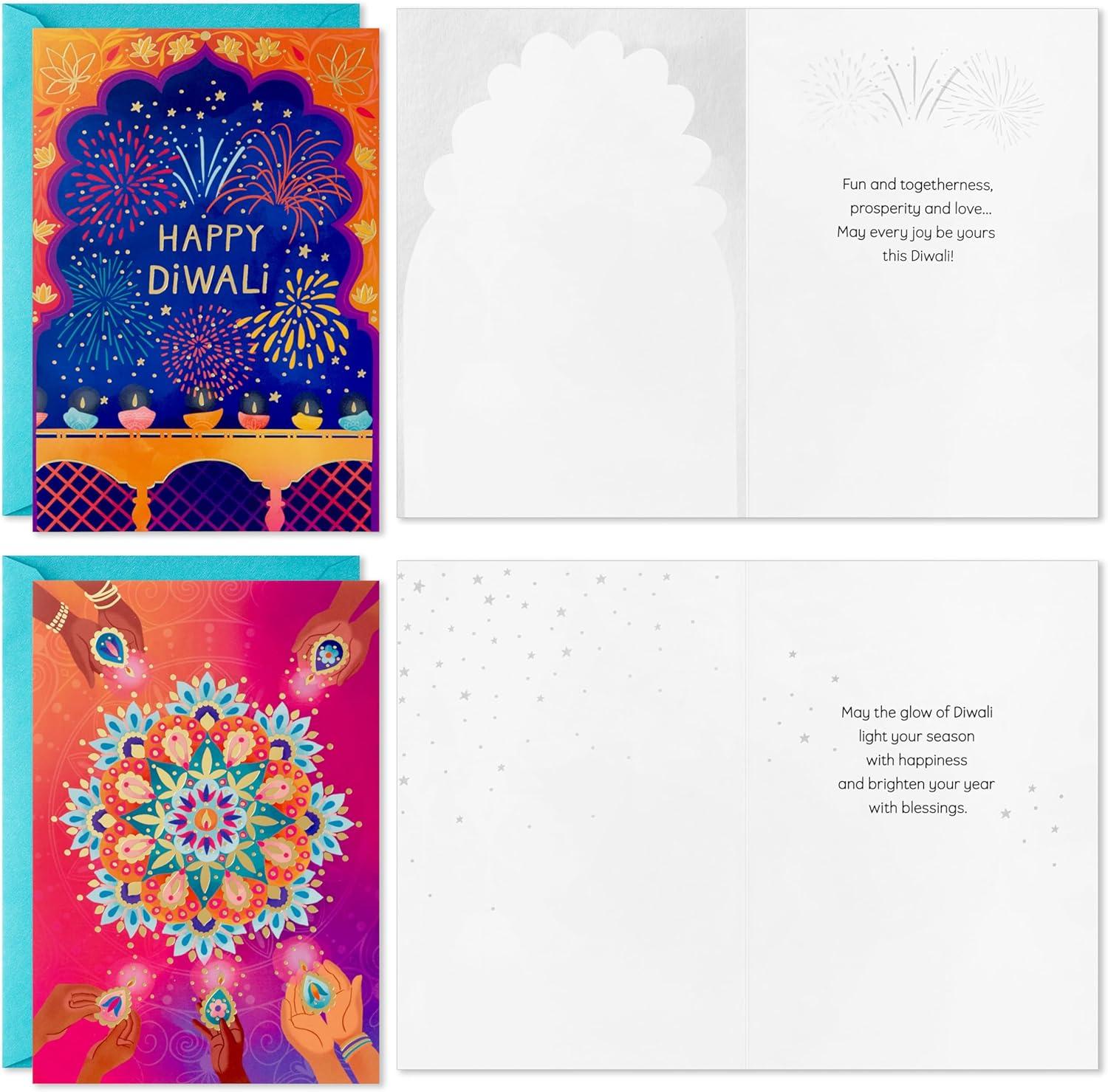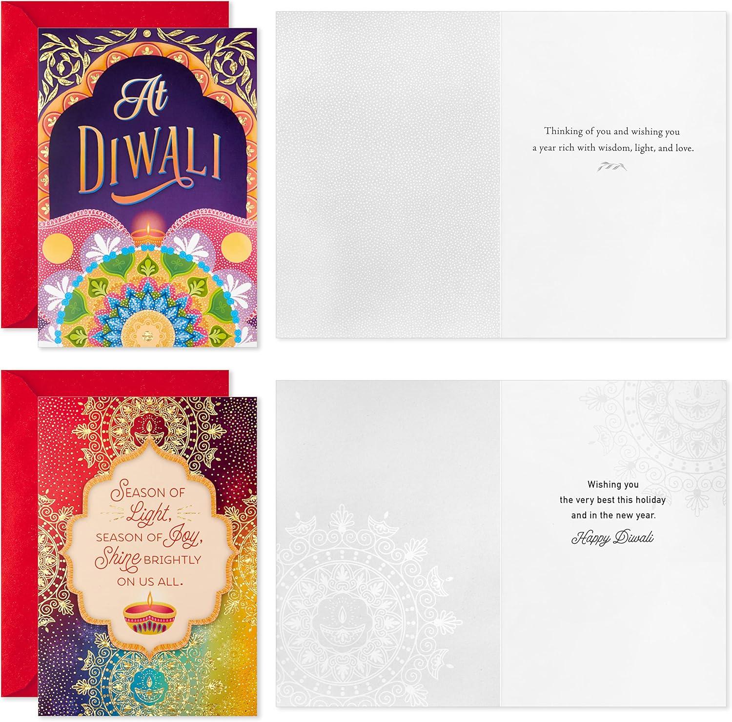 Hallmark Golden Thread Diwali Card Assortment, Happy Diwali (16 Cards with Envelopes)
