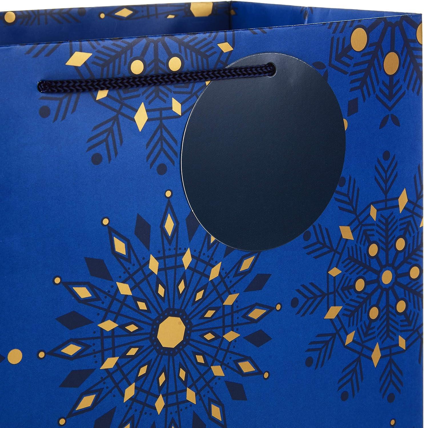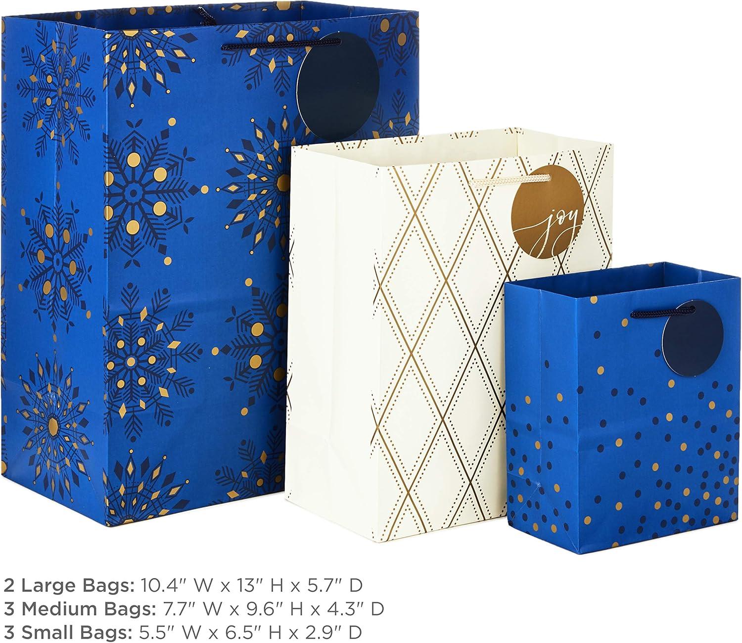 Hallmark Holiday Gift Bags Assorted Sizes (8 Bags: 3 Small 6″, 3 Medium 9″, 2 Large 13″) Navy Blue and Gold Dots, Diamonds and Starry Snowflakes for Christmas, Hanukkah, Weddings, Graduations and More, Navy and Gold, Hanukkah (0005XGB1405)