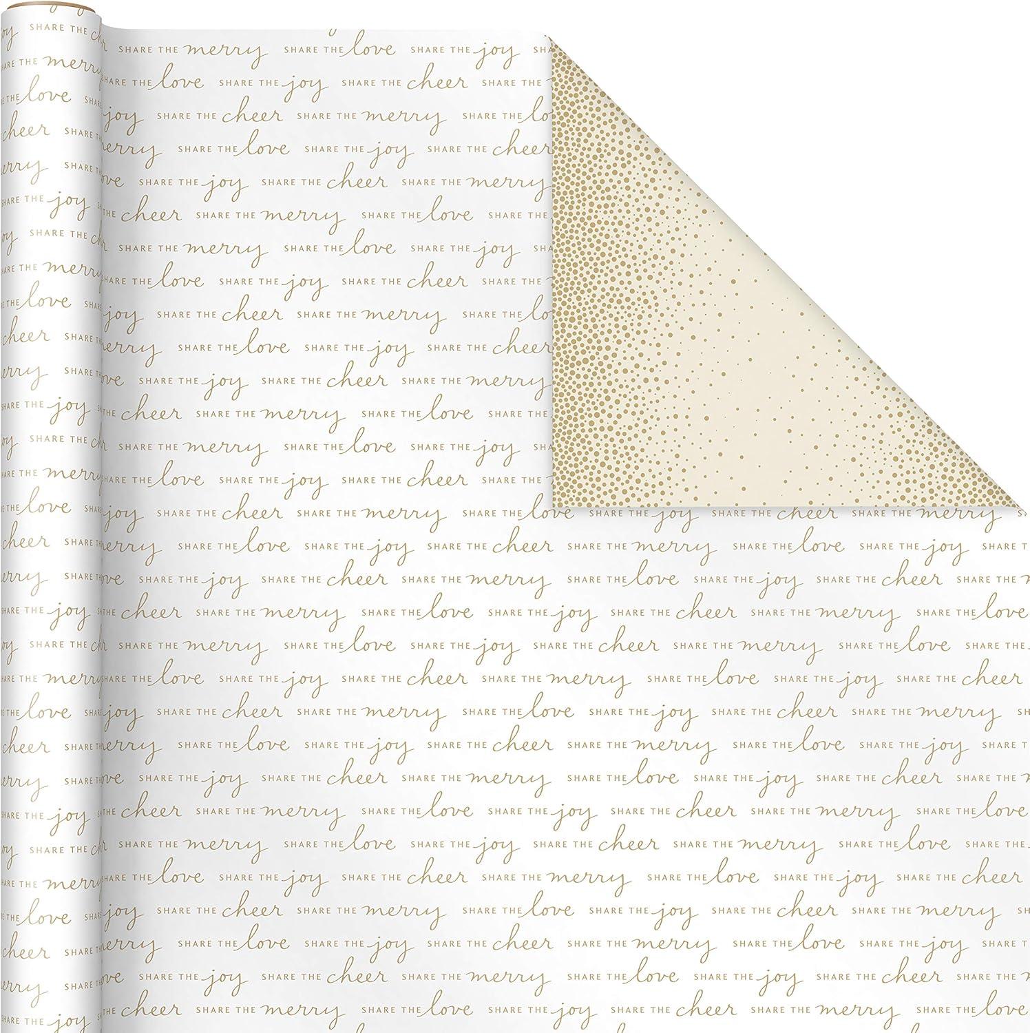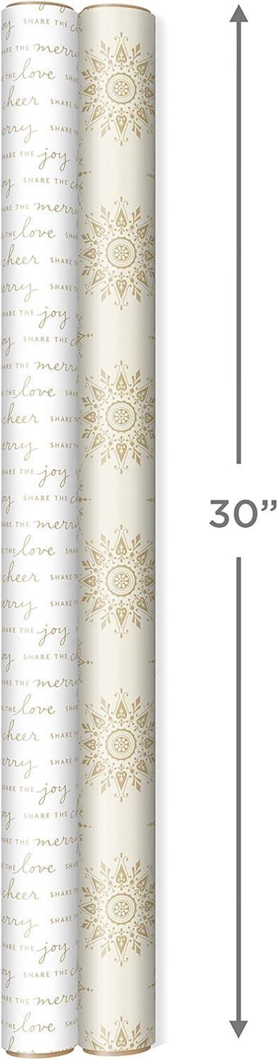 Hallmark Reversible White and Gold Wrapping Paper – Bulk (2 Jumbo Rolls: 160 sq. ft. ttl) Share the Joy, Cheer, Merry, Love, Stripes, Dots, Snowflakes for Christmas Hanukkah, Weddings, Graduations