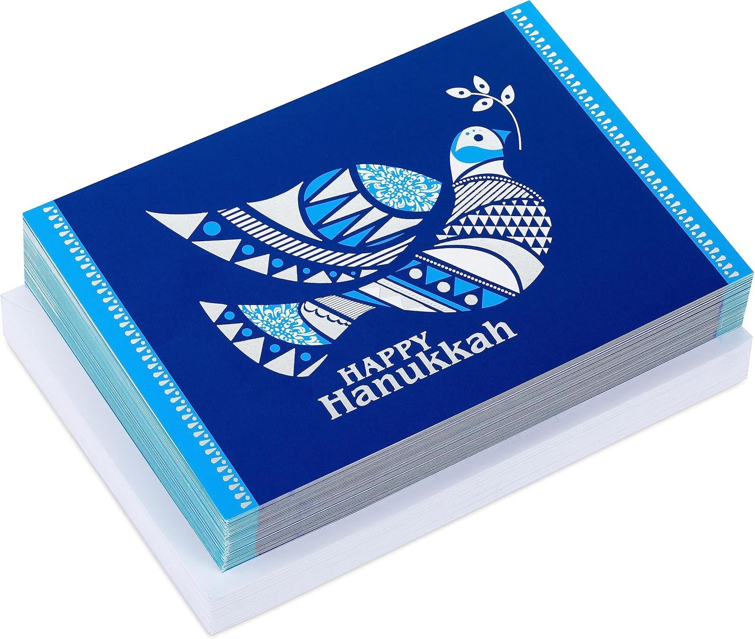 Hallmark Tree of Life Hanukkah Boxed Cards (40 Cards and Envelopes) Blue and Silver Dove(Blue and Silver Dove Hanukkah Cards)