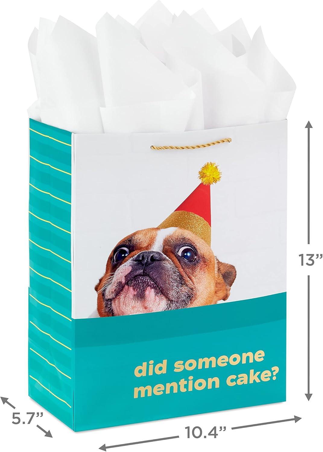 Hallmark 13″ Large Gift Bag with Birthday Card and Tissue Paper (Blue with Stars, Birthday Boy)(Did Someone Mention Cake?)
