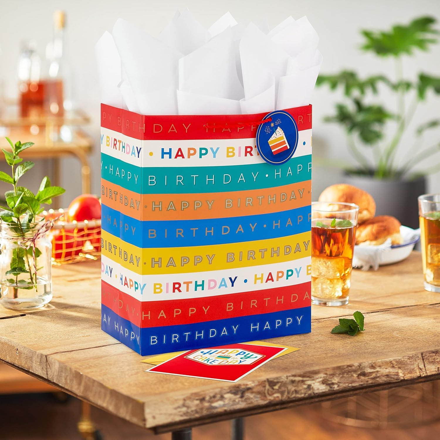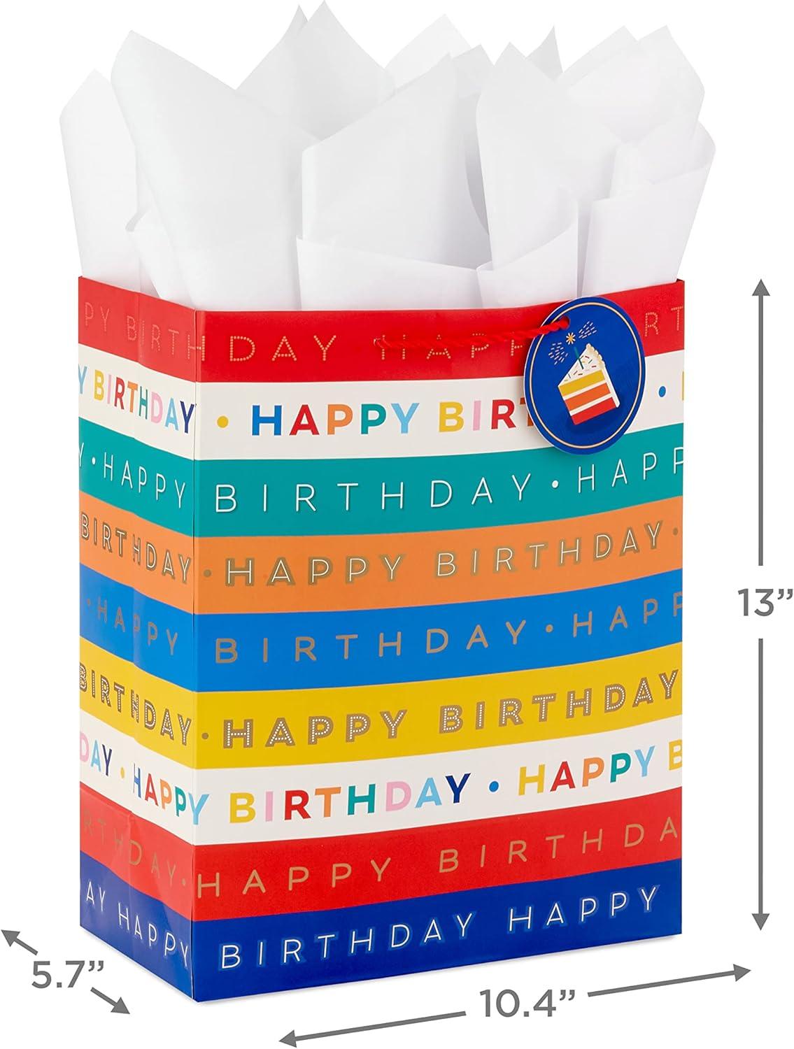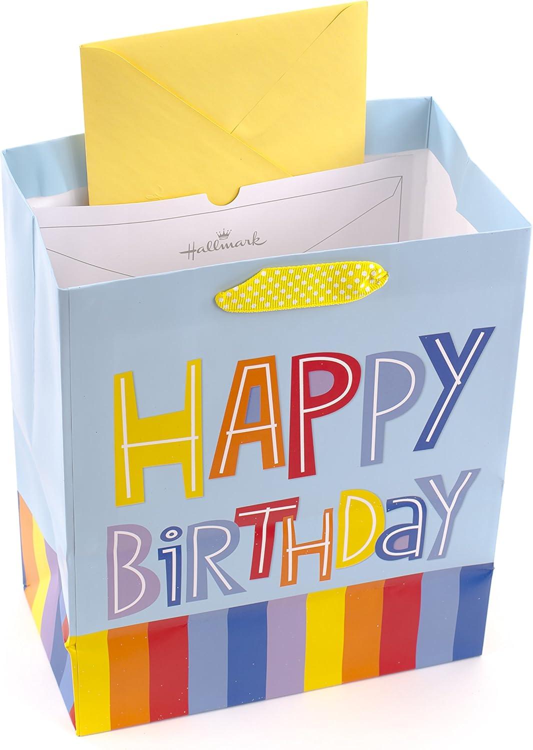 Hallmark 13″ Large Gift Bag with Birthday Card and Tissue Paper (Blue with Stars, Birthday Boy)(Striped Birthday)