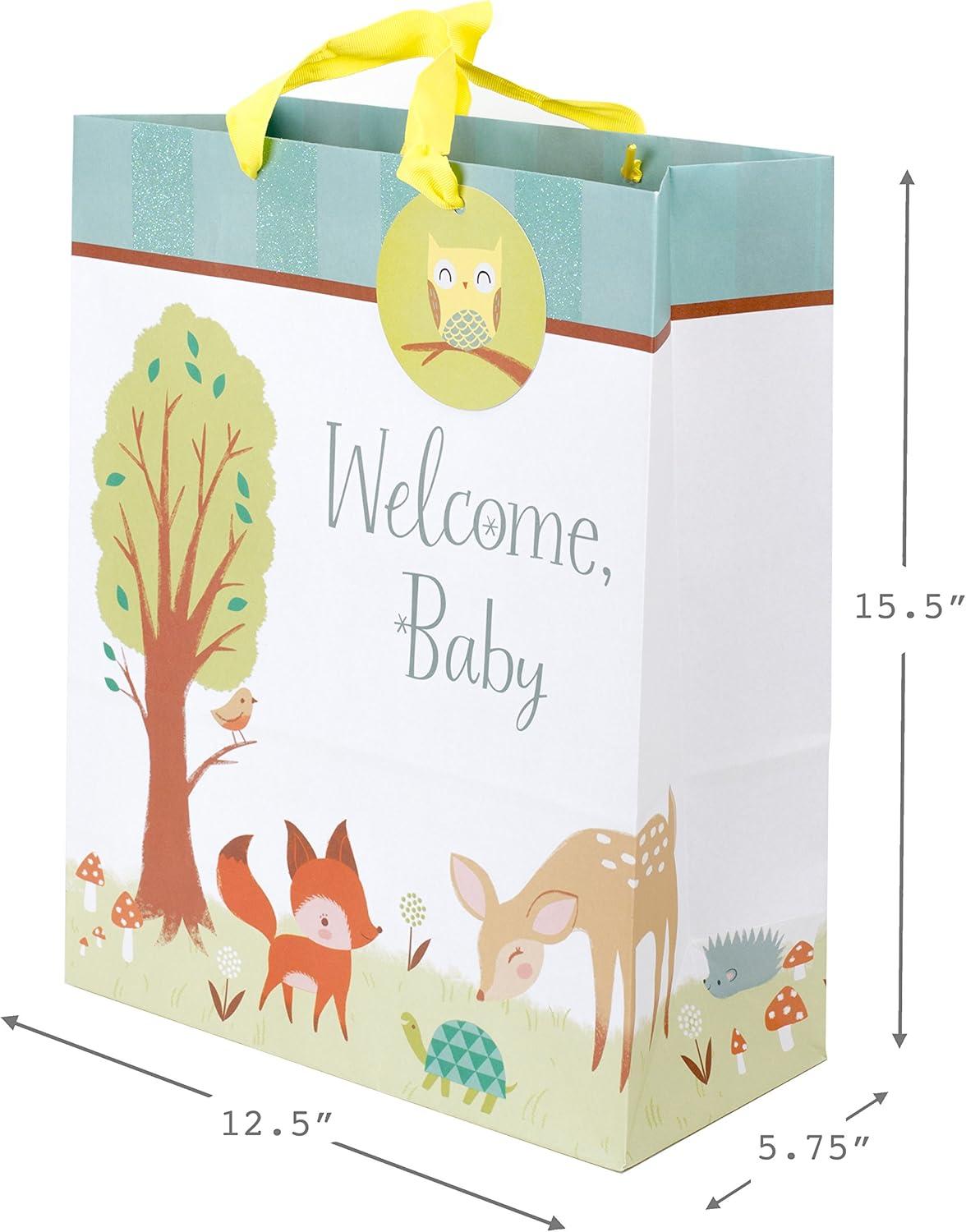 Hallmark 15″ Extra Large Baby Gift Bag with Tissue Paper (Woodland Animals) for Baby Showers, New Parents and More(Welcome Baby)