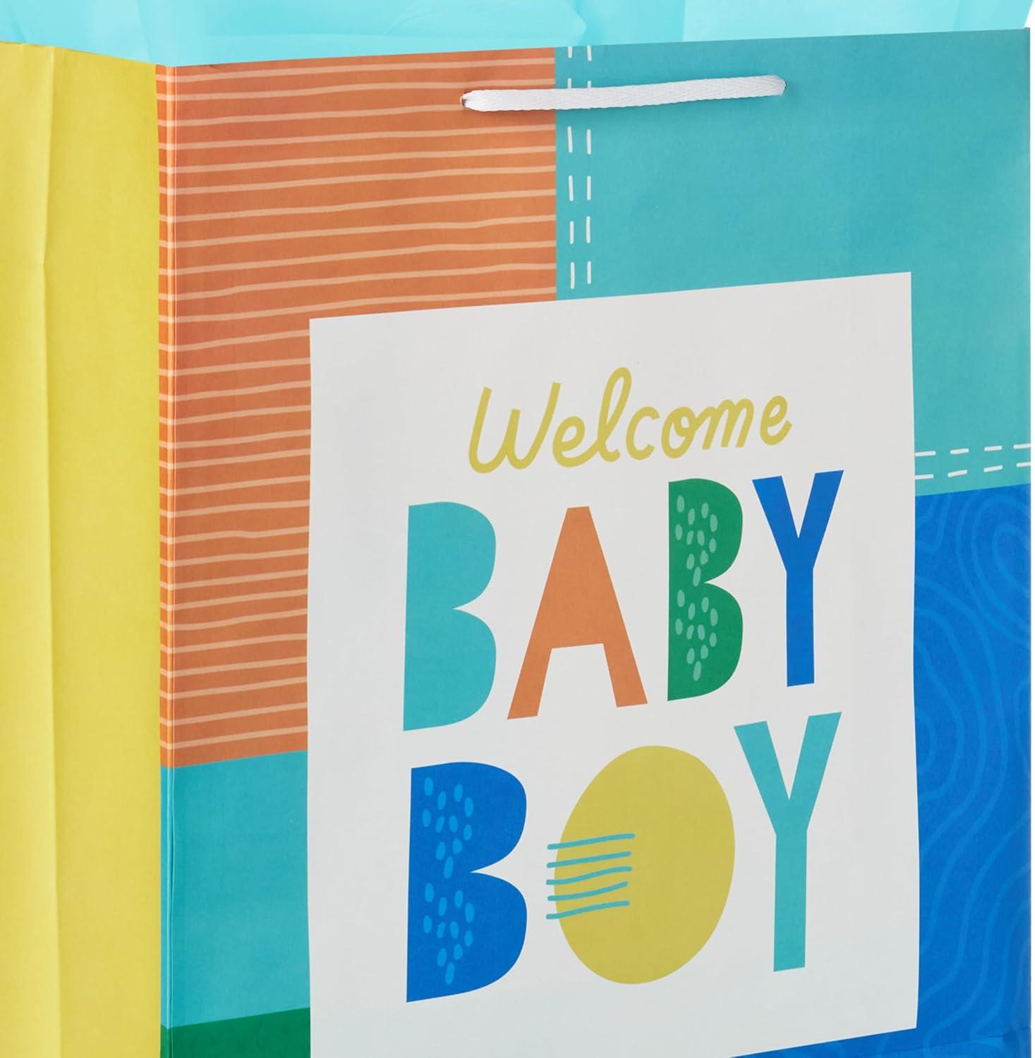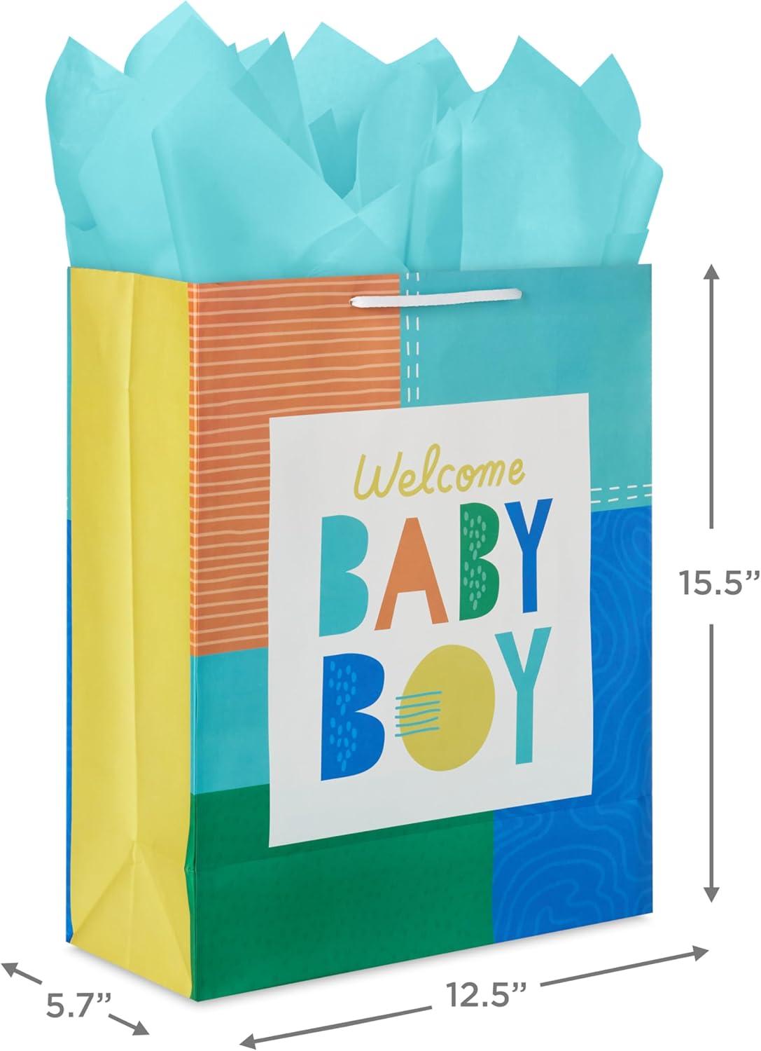 Hallmark 15″ Extra Large Baby Gift Bag with Tissue Paper (Woodland Animals) for Baby Showers, New Parents and More(Welcome Baby Boy)