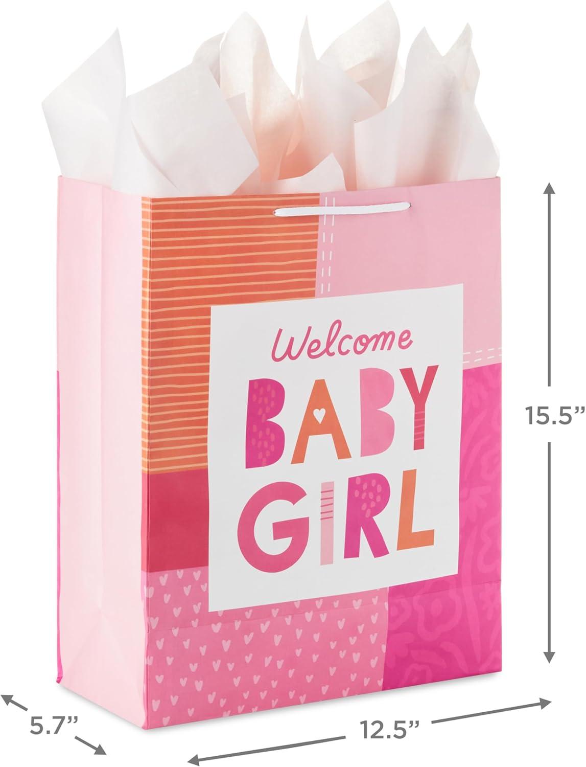 Hallmark 15″ Extra Large Baby Gift Bag with Tissue Paper (Woodland Animals) for Baby Showers, New Parents and More(Welcome Baby Girl)