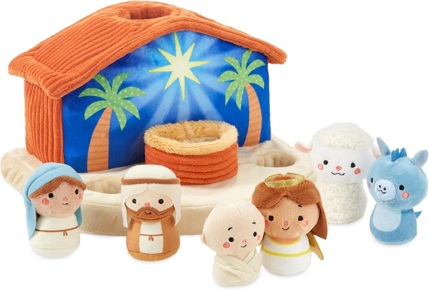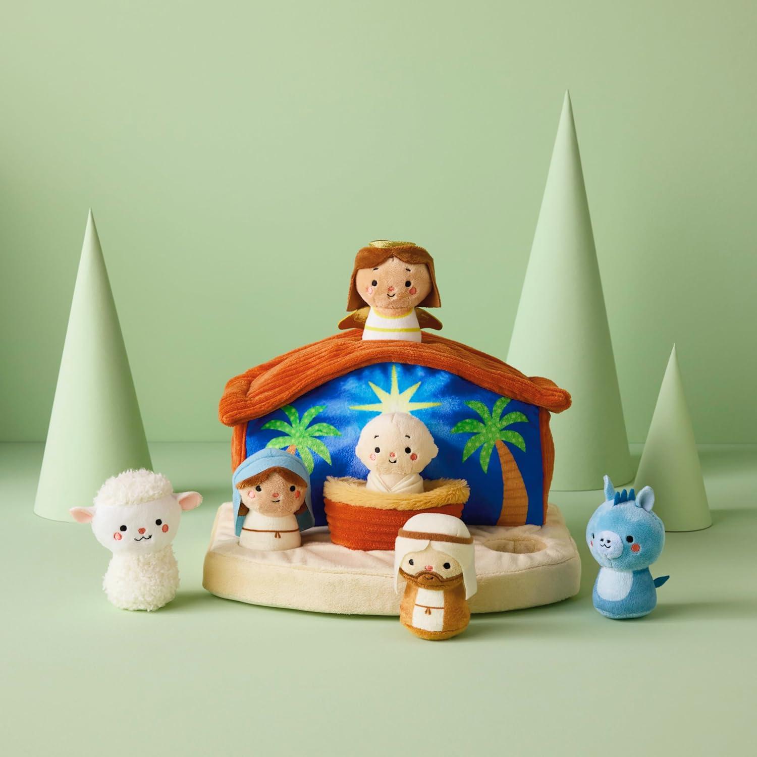 Hallmark Nativity Scene Plush Toy (Manger with Baby Jesus, Mary, Joseph, Angel, Animals) for Kids, Grandchildren