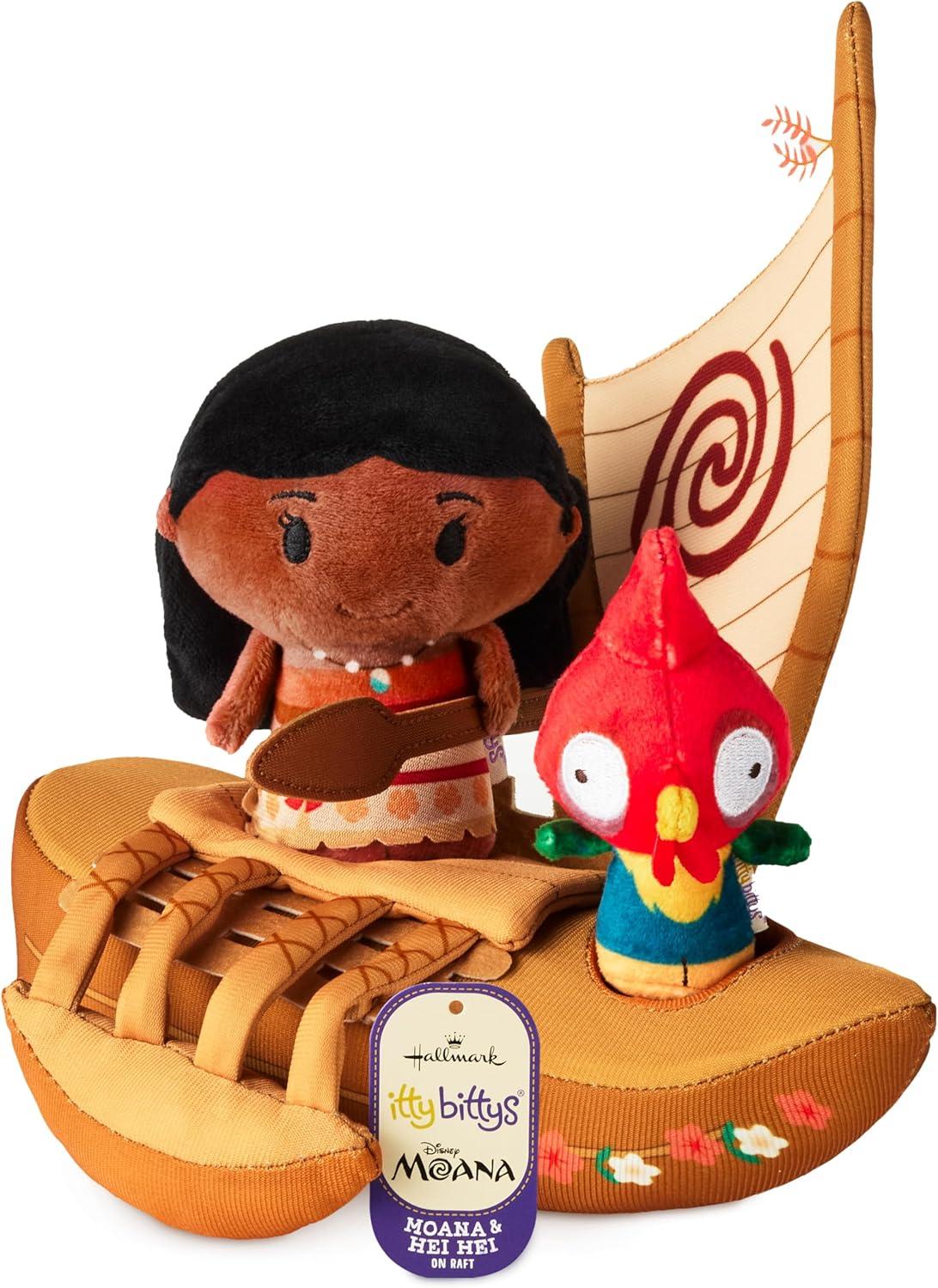 Hallmark itty Bitty Disney Moana Plush Toys, Set of 3 (Moana and Heihei with Boat) Gift for Kids, Collectors, Fans