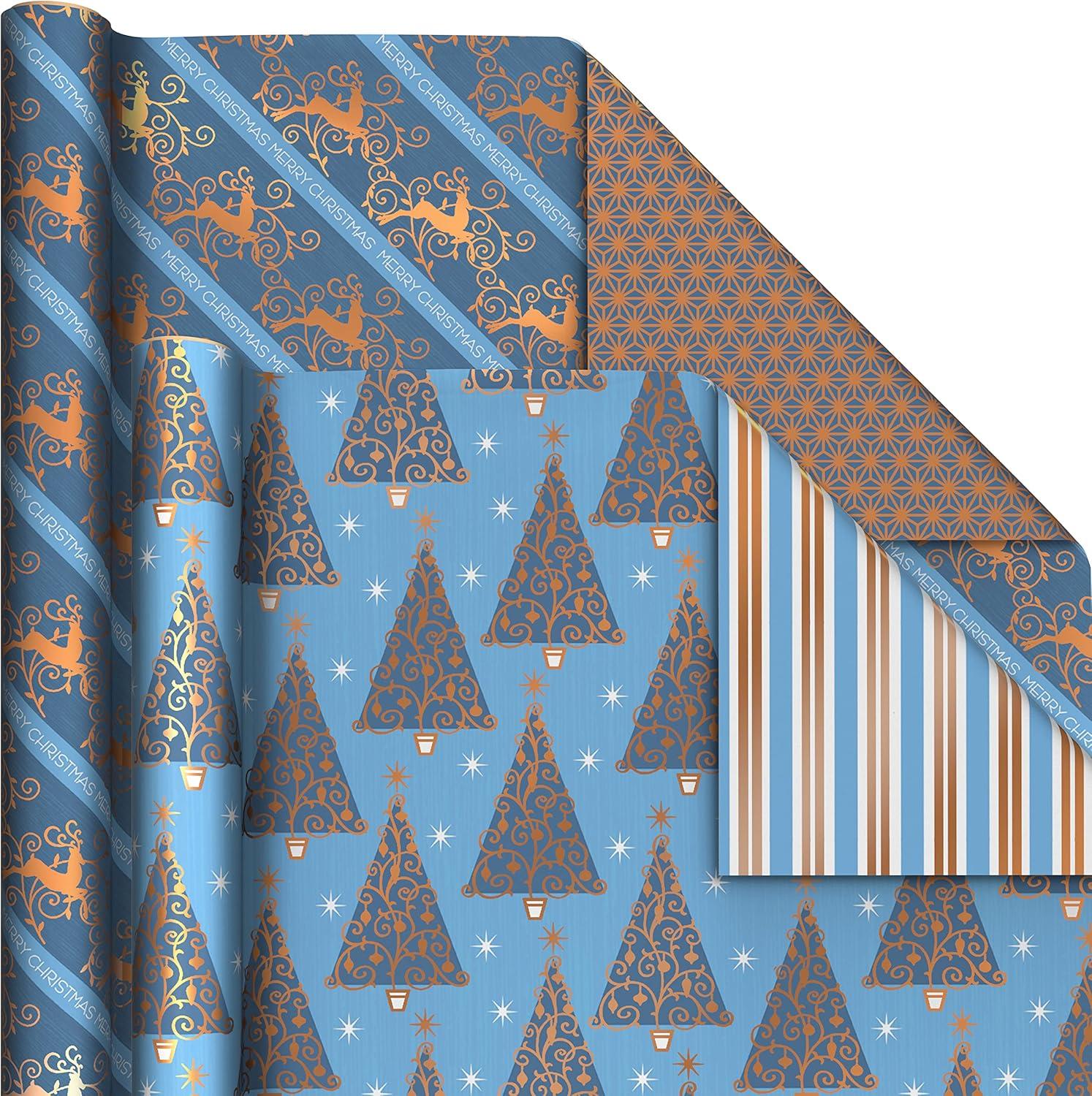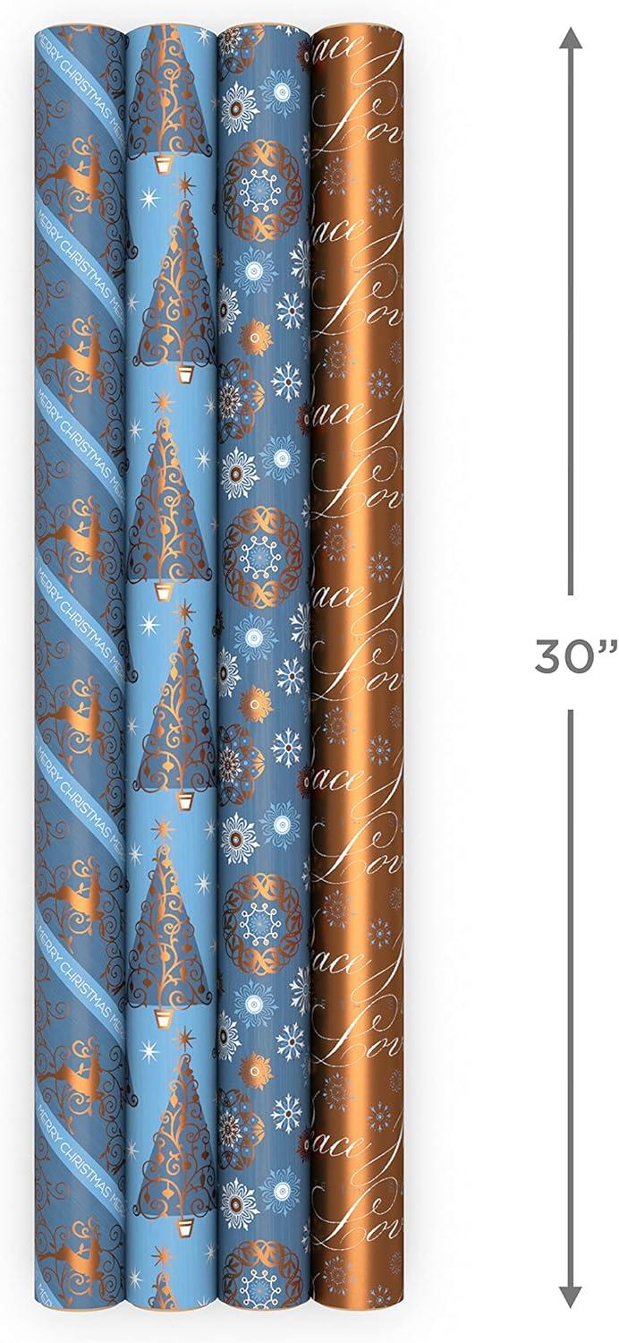 - Don't miss out on our limited-time offer: buy Hallmark Reversible Christmas Wrapping Paper Bundle, Elegant Blue and Gold (4 Rolls: 150 sq. ft. ttl.) Dark Blue, Gold, Teal Snowflakes, Peace, Stripes, Geometric(Santa and Trees), get {accessory} free!