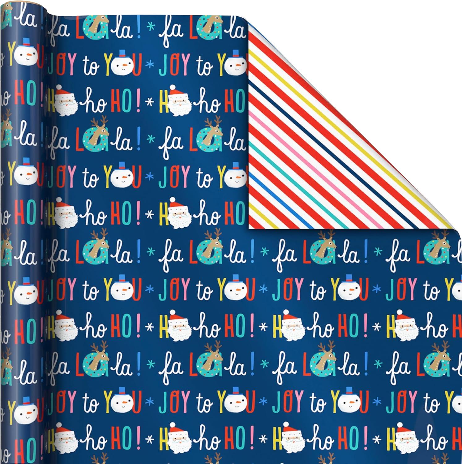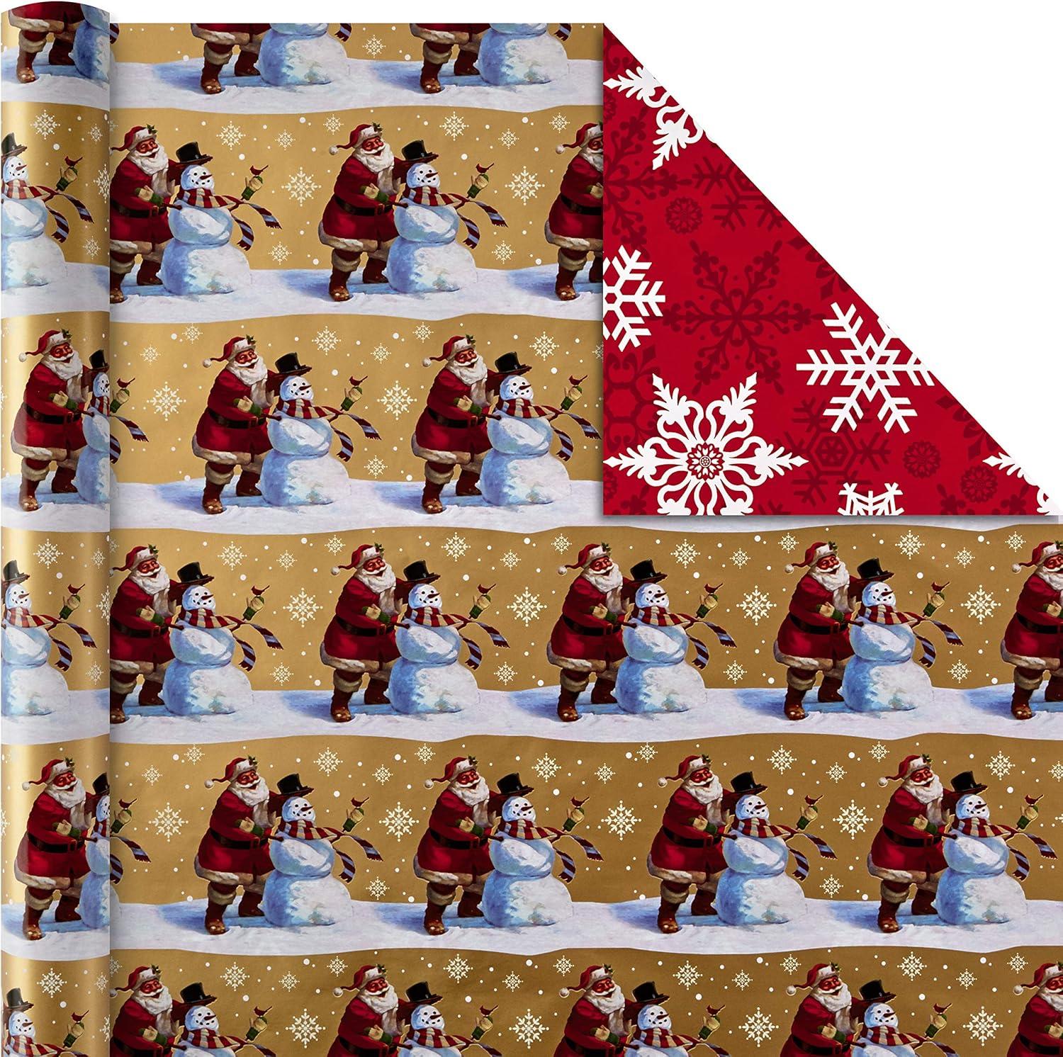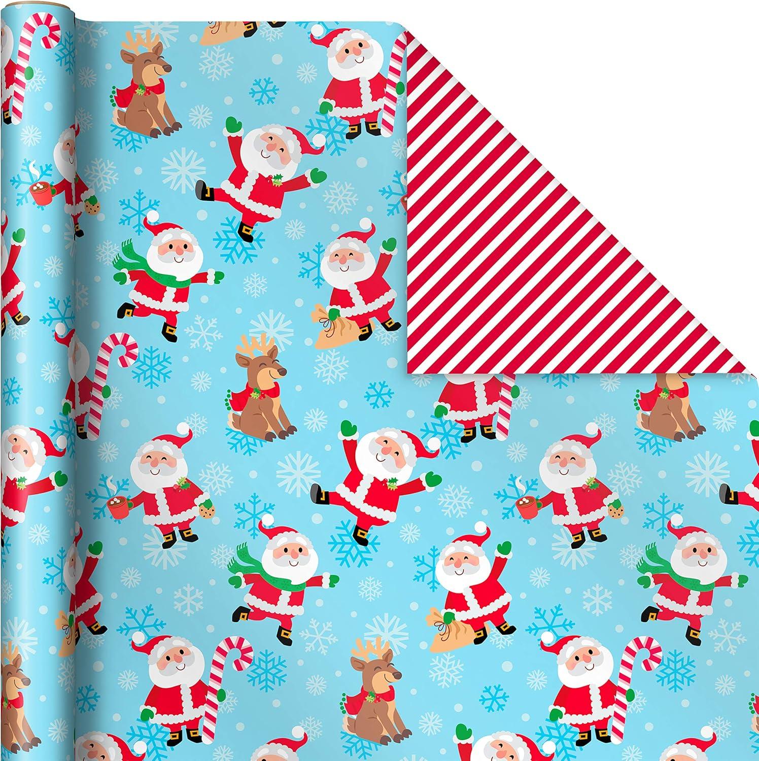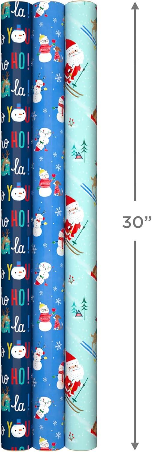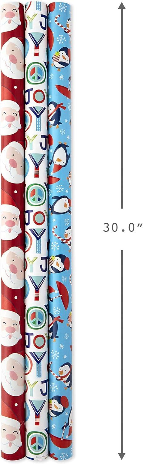 - Get your hands on our exclusive Hallmark Kraft Christmas Wrapping Paper for Kids with Cut Lines on Reverse (4 Rolls: 88 sq. ft. ttl) Penguins, Santa, Snowmen, Polka Dots(Christmas Lights Deer Snowflakes Red Green Blue Stripes) collection, now at a discounted price.