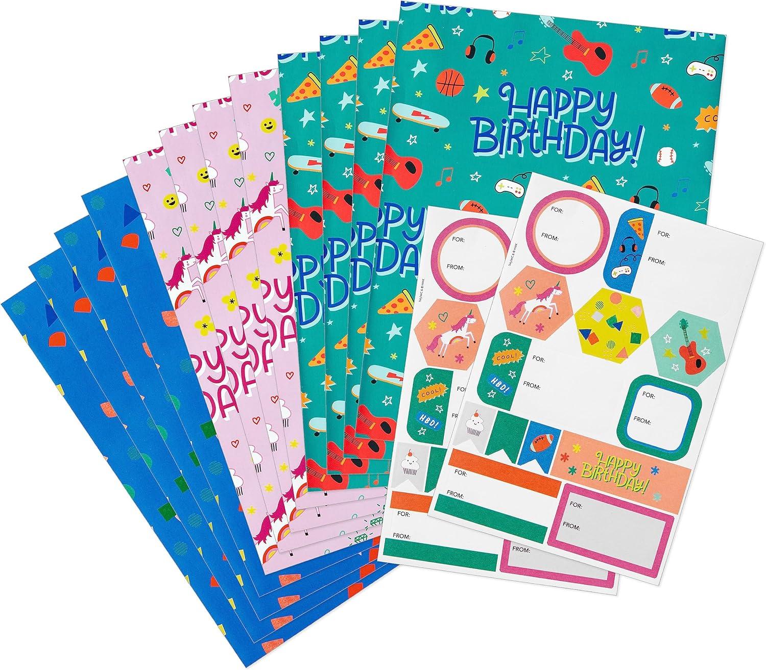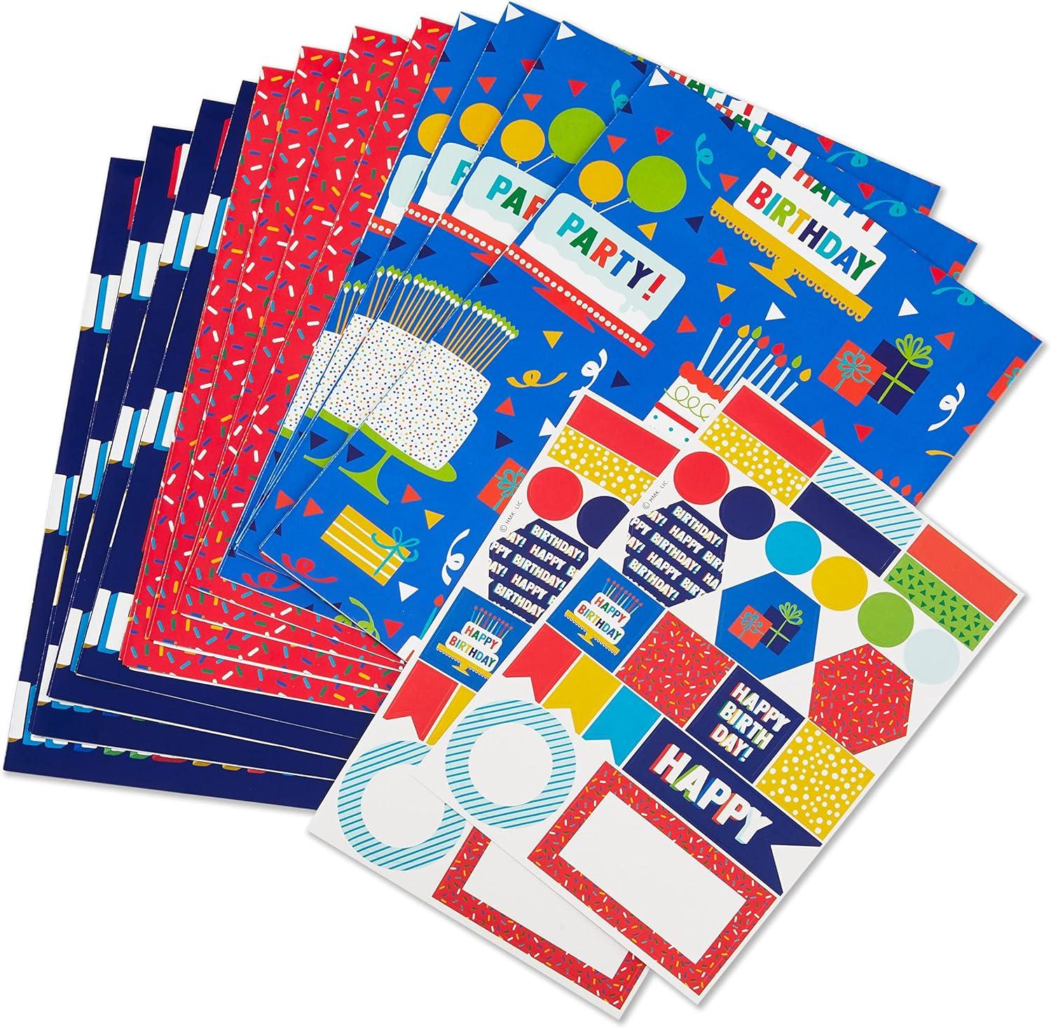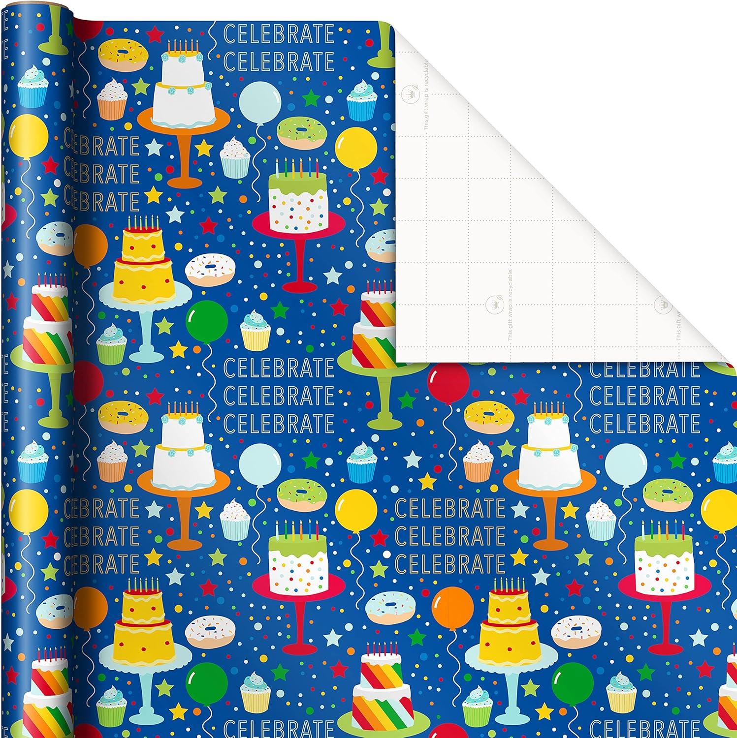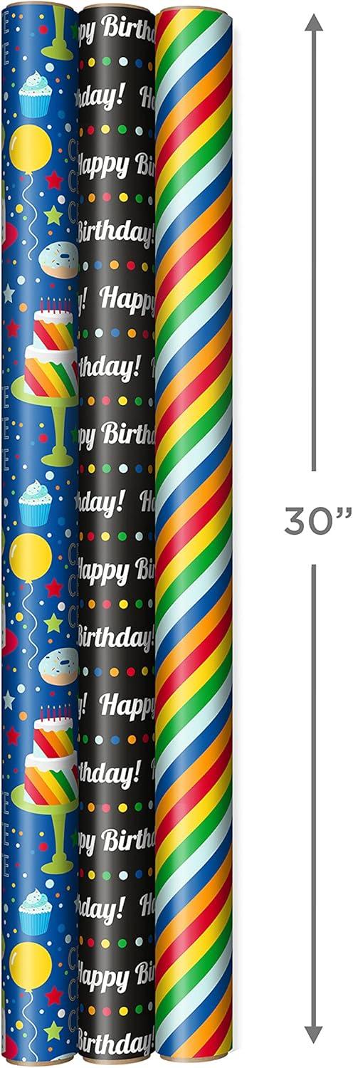 - Our clearance event features the best deals on Hallmark Birthday Wrapping Paper Rolls - Balloons, Stars, Cupcakes, Blue Stripes, Solid Red Gift Wrap Paper (Set of 3 Reversible Rolls: 75 sq. ft. ttl.)(Kids Birthday Tri-Pack) and accessories. Shop now!