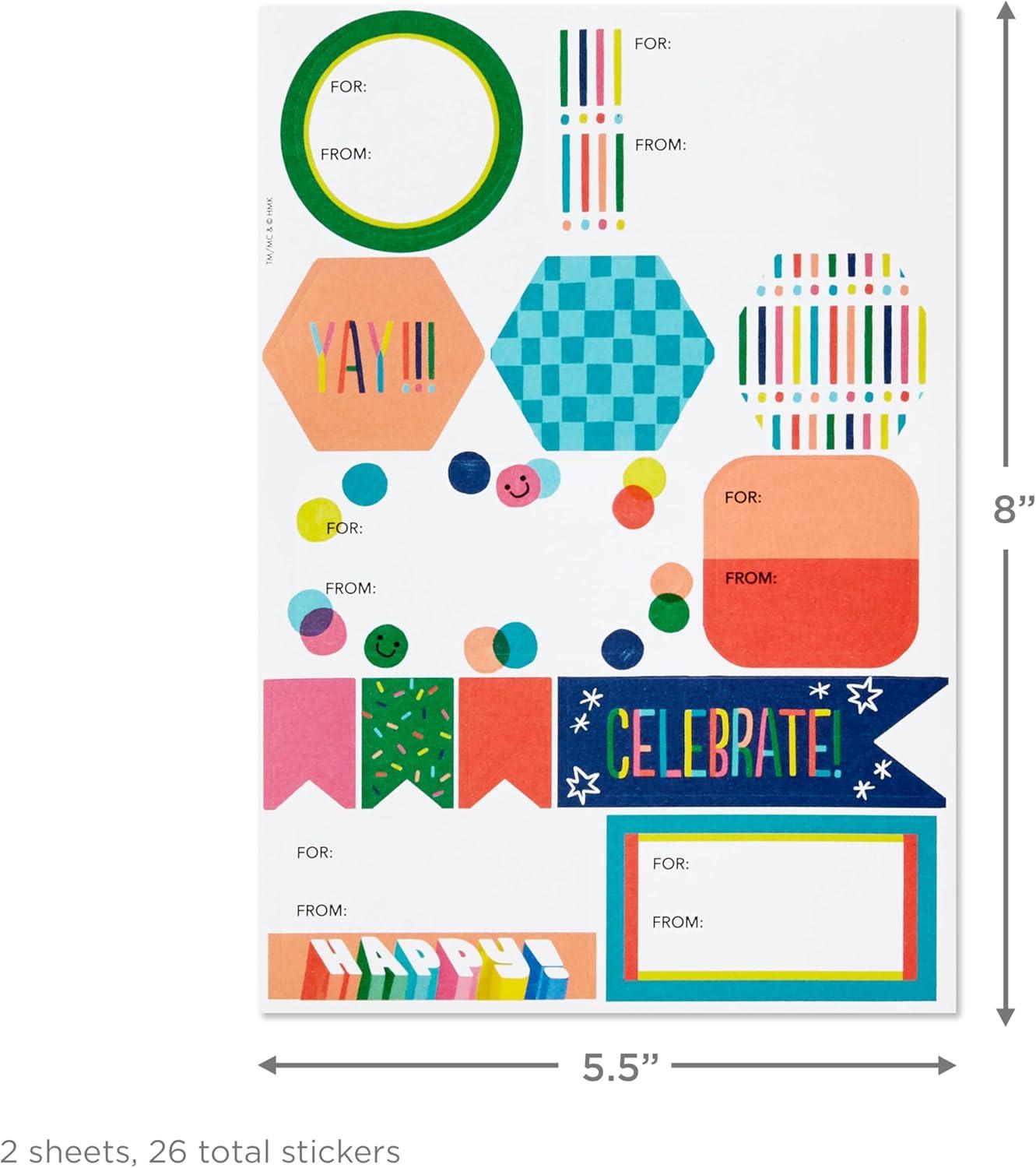 Hallmark Reversible Flat Wrapping Paper Sheets (12 Folded Sheets with Sticker Seals) Rainbow Happy, Exclamation Points, Polka Dots, Confetti for Birthdays, Graduations, Celebrations(Pink Blue Green)