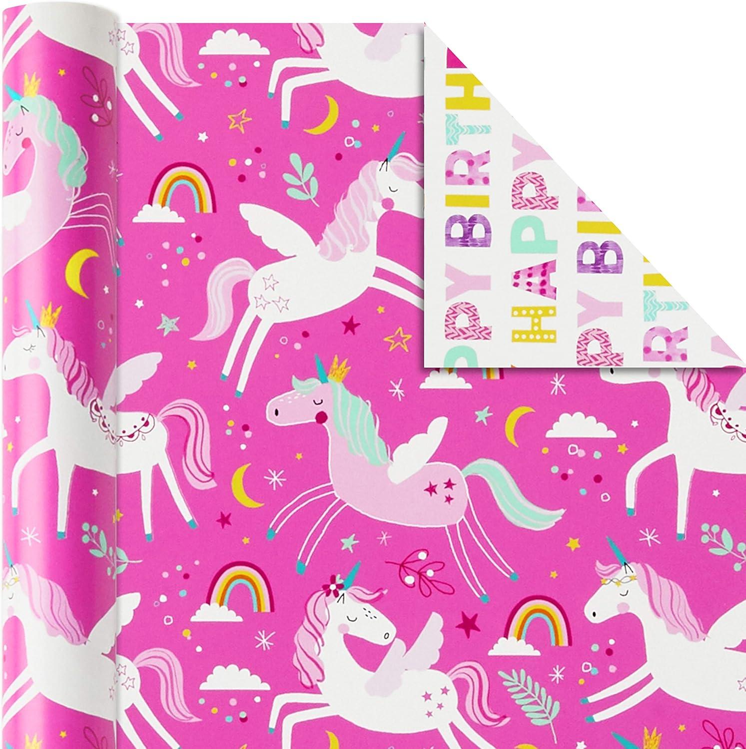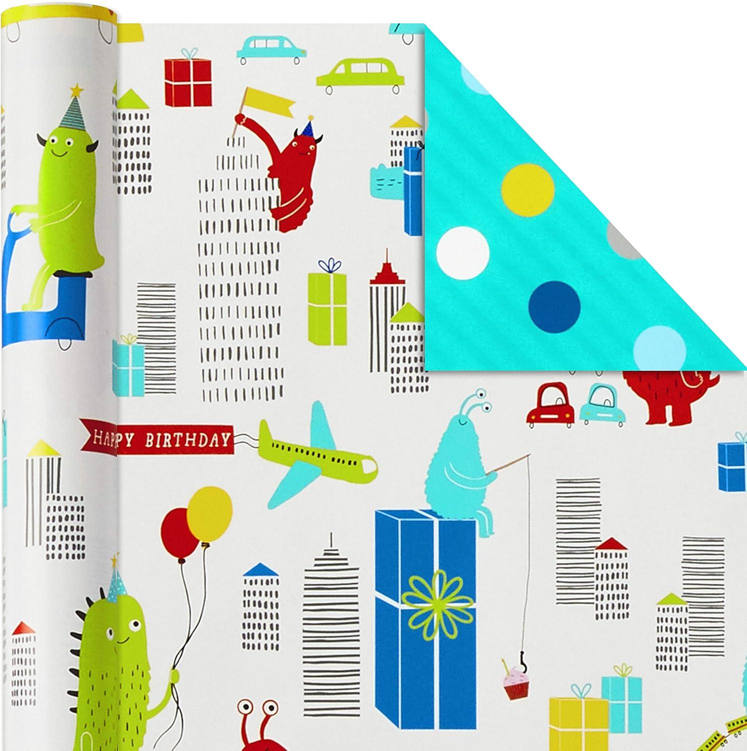 Hallmark Reversible Kids Birthday Wrapping Paper, Monsters and Unicorns (Pack of 3, 120 sq. ft. ttl.)(Monsters and Unicorns)