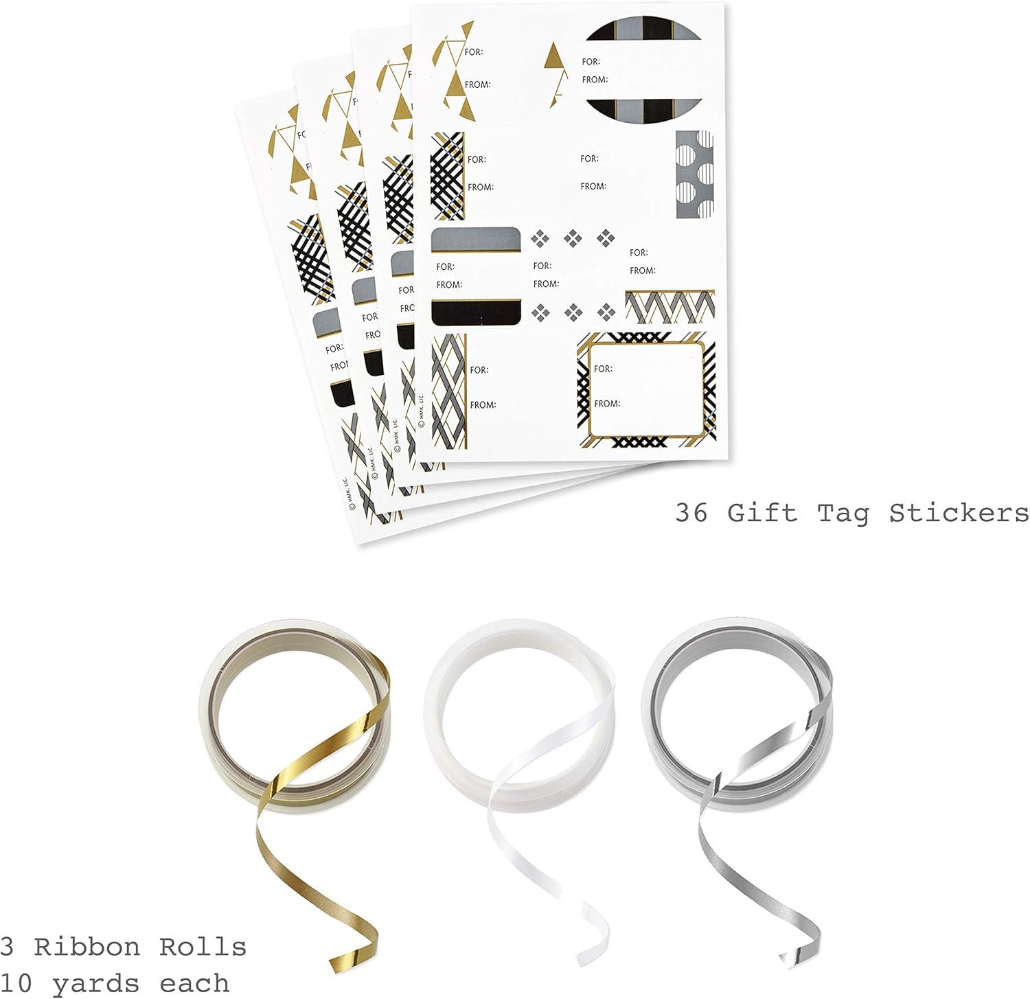 - Don't miss out on our limited-time offer: buy Hallmark Reversible Wrapping Paper Bundle with Ribbon & Gift Tag Stickers - Black, Gold Stripes, Plaid (3 Pack, 120 sq. ft. TTL, 30 Yds. Mini Ribbon, 36 Labels) for Graduations, Weddings, Christmas(White Black Gold Gray), get {accessory} 50% off!