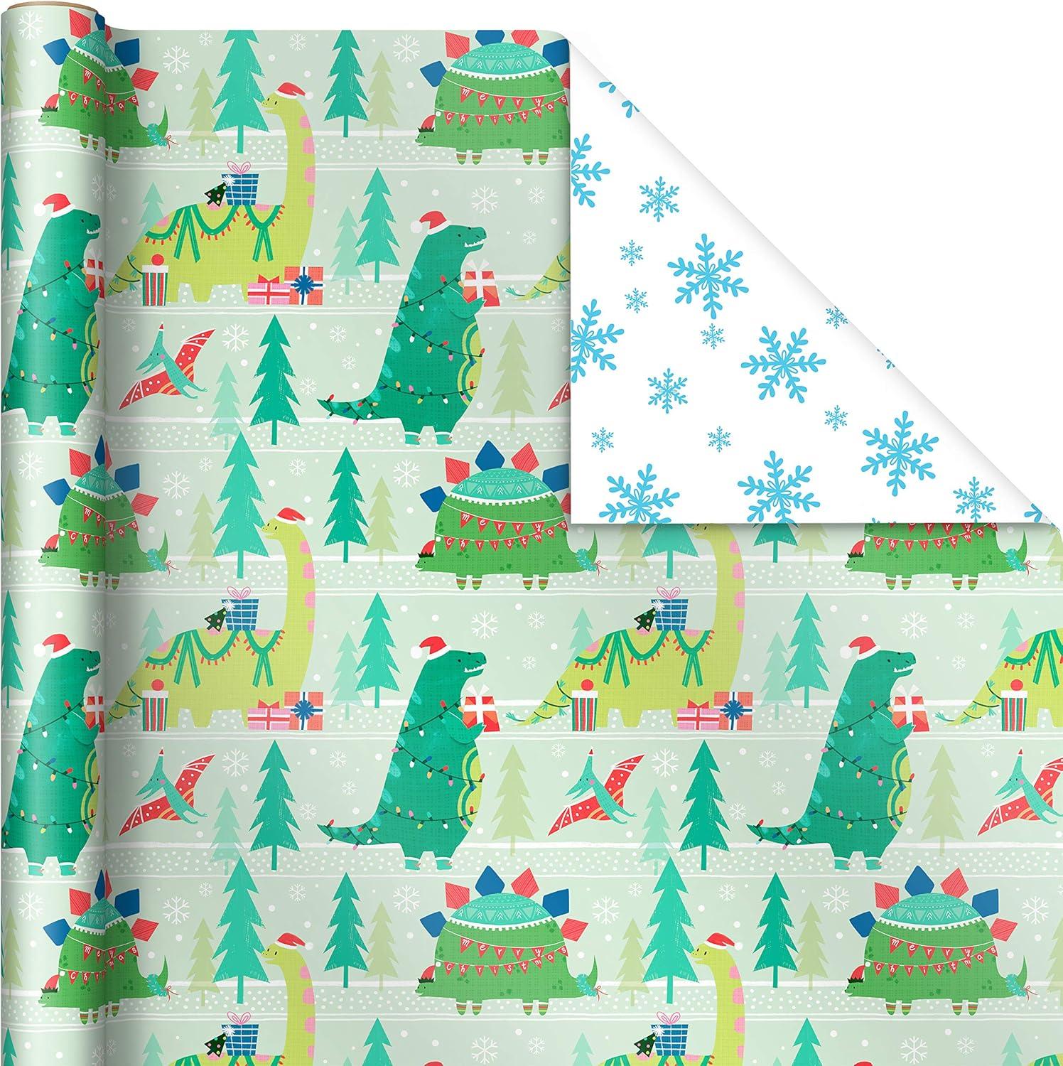 Hallmark Trendy Reversible Christmas Wrapping Paper for Kids (3 Rolls: 120 sq. ft. ttl) Dinosaurs, Koalas, Polar Bears, Penguins, Camels, Zebras, Stripes(Dinosaurs Koalas Polar Bears Penguins Camels Zebras Stripes)