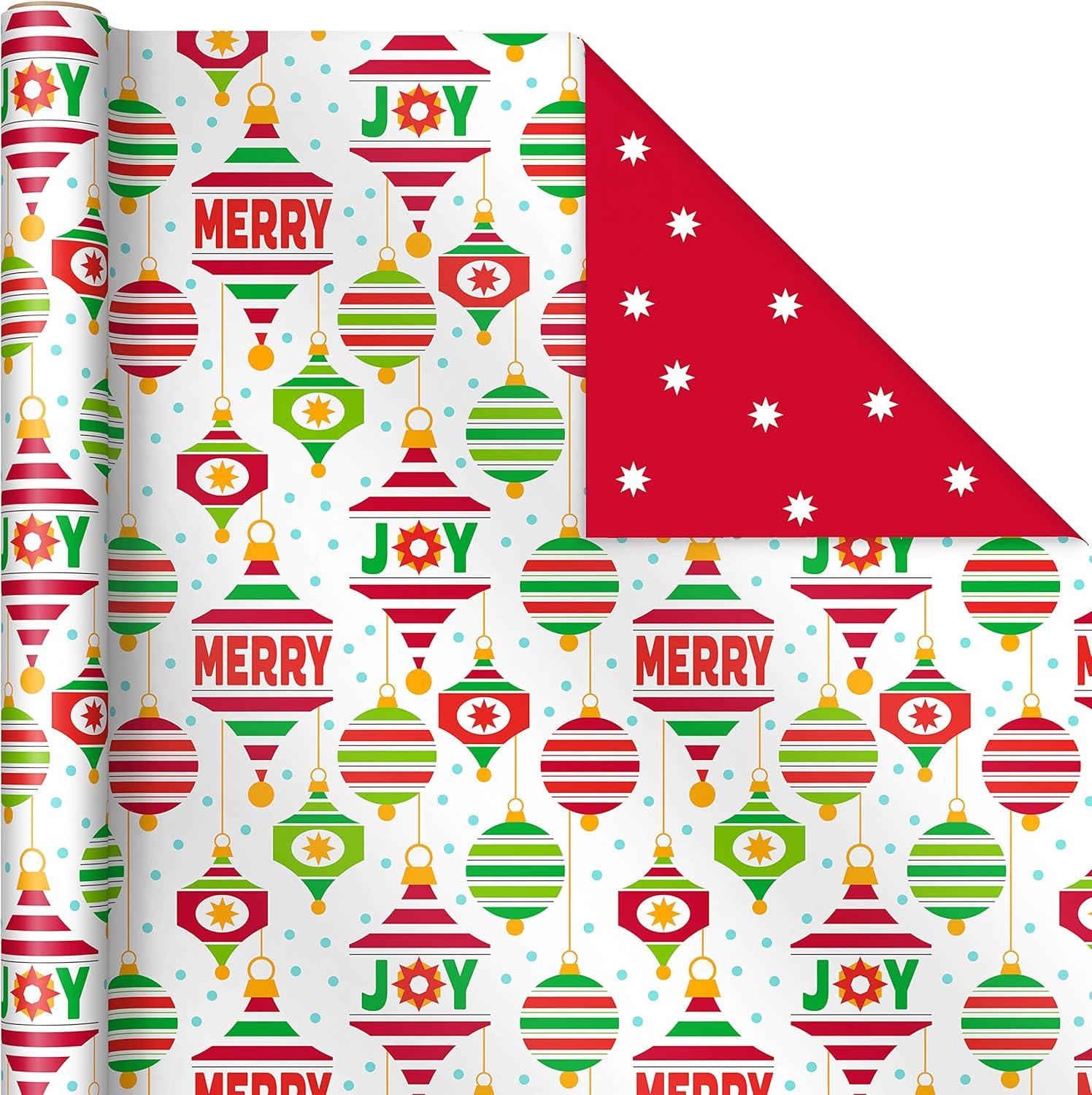 Hallmark Trendy Reversible Christmas Wrapping Paper for Kids (3 Rolls: 120 sq. ft. ttl) Dinosaurs, Koalas, Polar Bears, Penguins, Camels, Zebras, Stripes(Vibrant Brights Stripes Trees Ornaments Polka Dots)