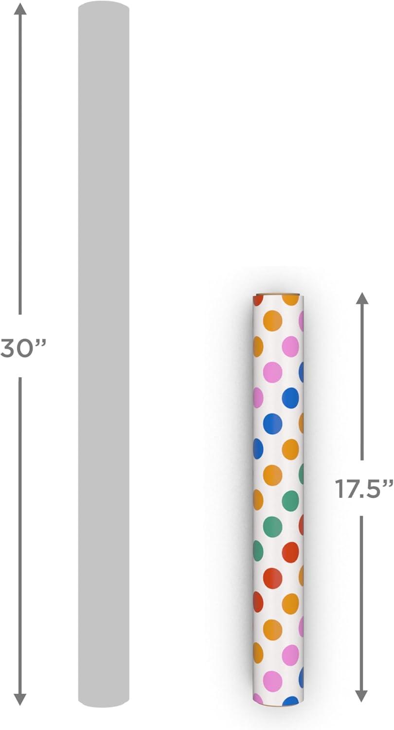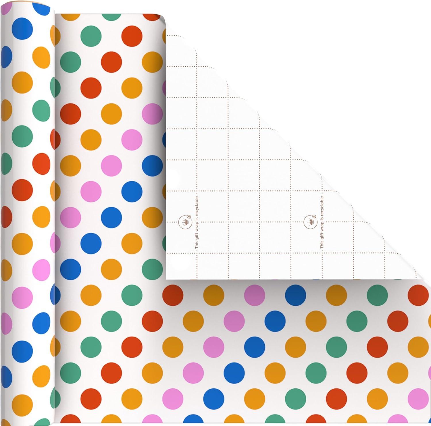 Hallmark Wrapping Paper Mini Roll – Orange, Blue, Pink and Green Stripes Gift Wrap Paper (1 Mini Roll: 40 sq. ft. ttl.) for Birthdays, Graduations, Mother’s Day, Any Occasion(Polka Dot)