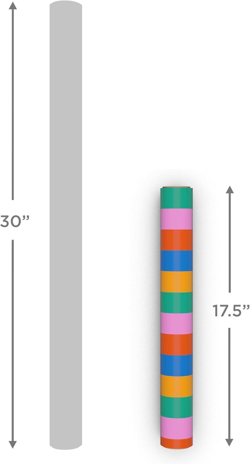 Hallmark Wrapping Paper Mini Roll – Orange, Blue, Pink and Green Stripes Gift Wrap Paper (1 Mini Roll: 40 sq. ft. ttl.) for Birthdays, Graduations, Mother’s Day, Any Occasion(Stripes)