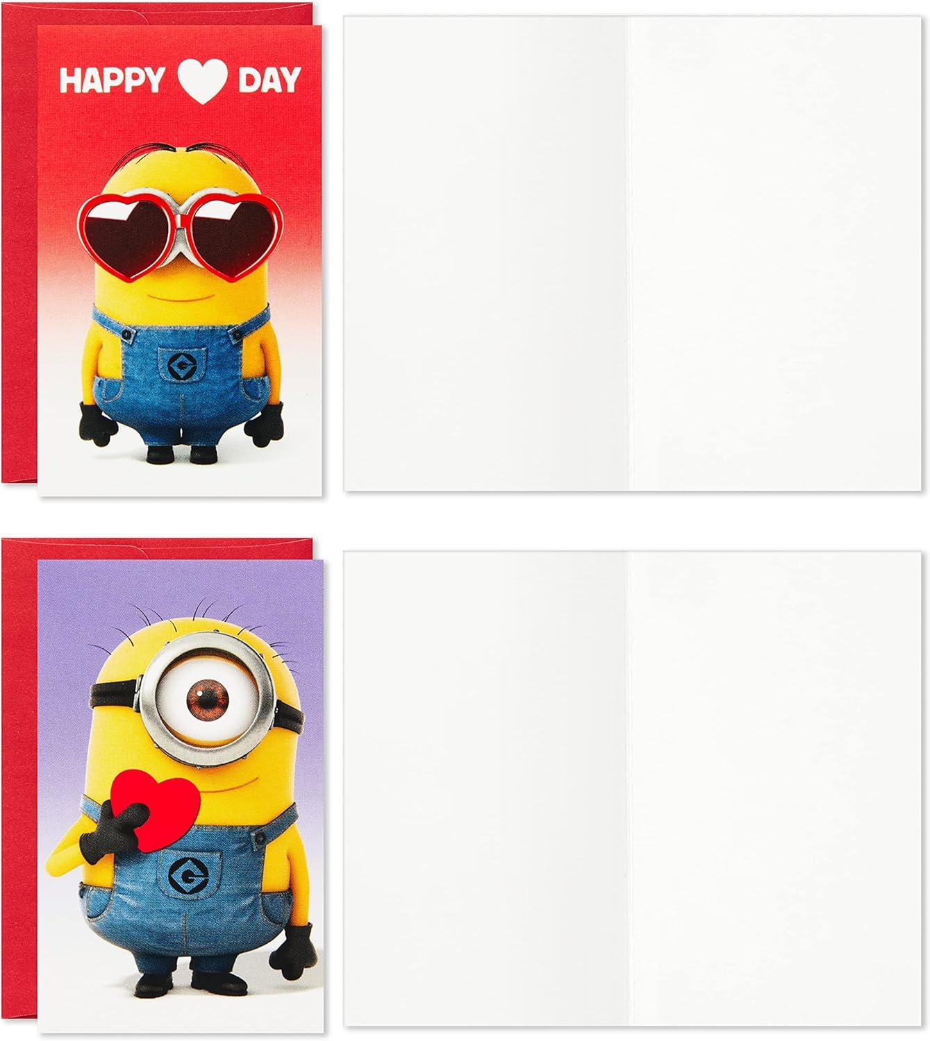 Hallmark Minions Mini Valentines Day Cards and Stickers for Kids School (18 Classroom Valentines with Envelopes)(Minions Folded Mini Valentines)