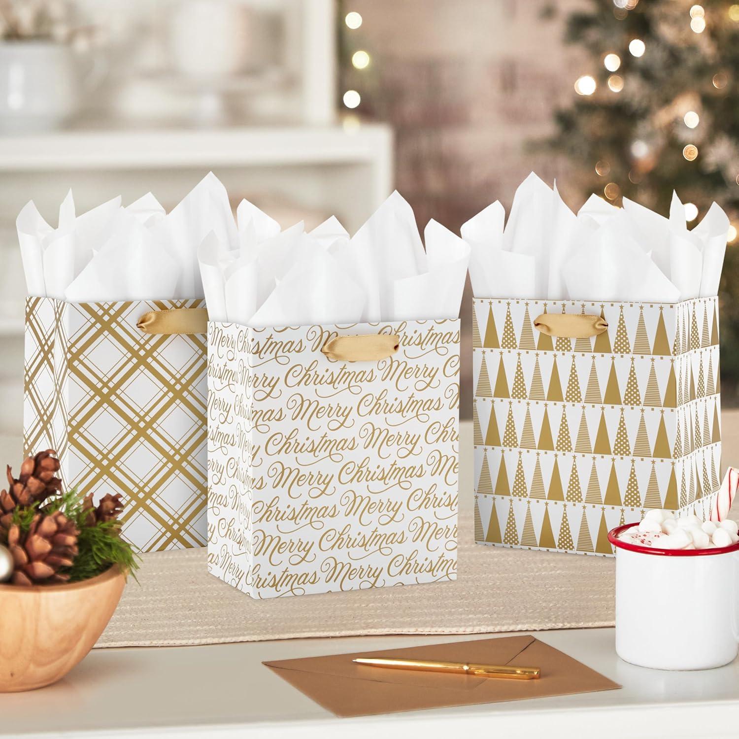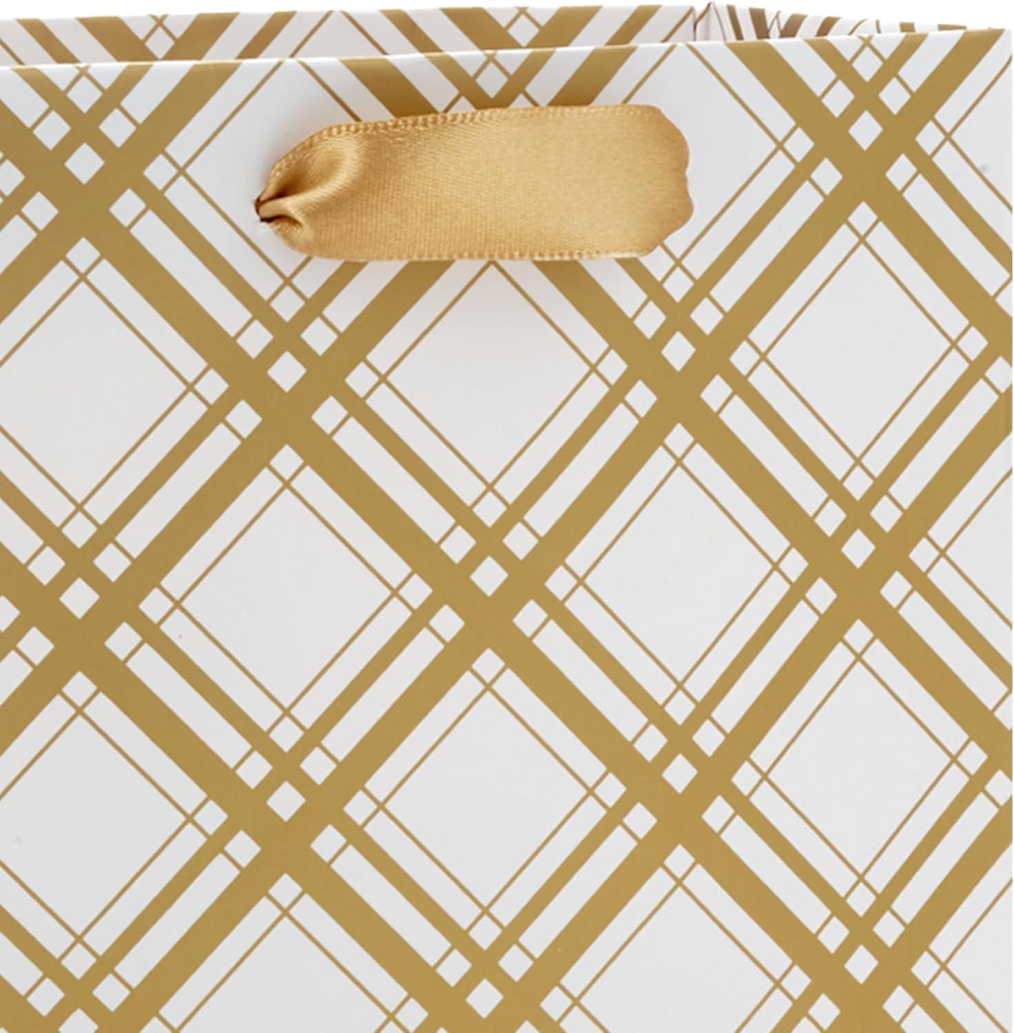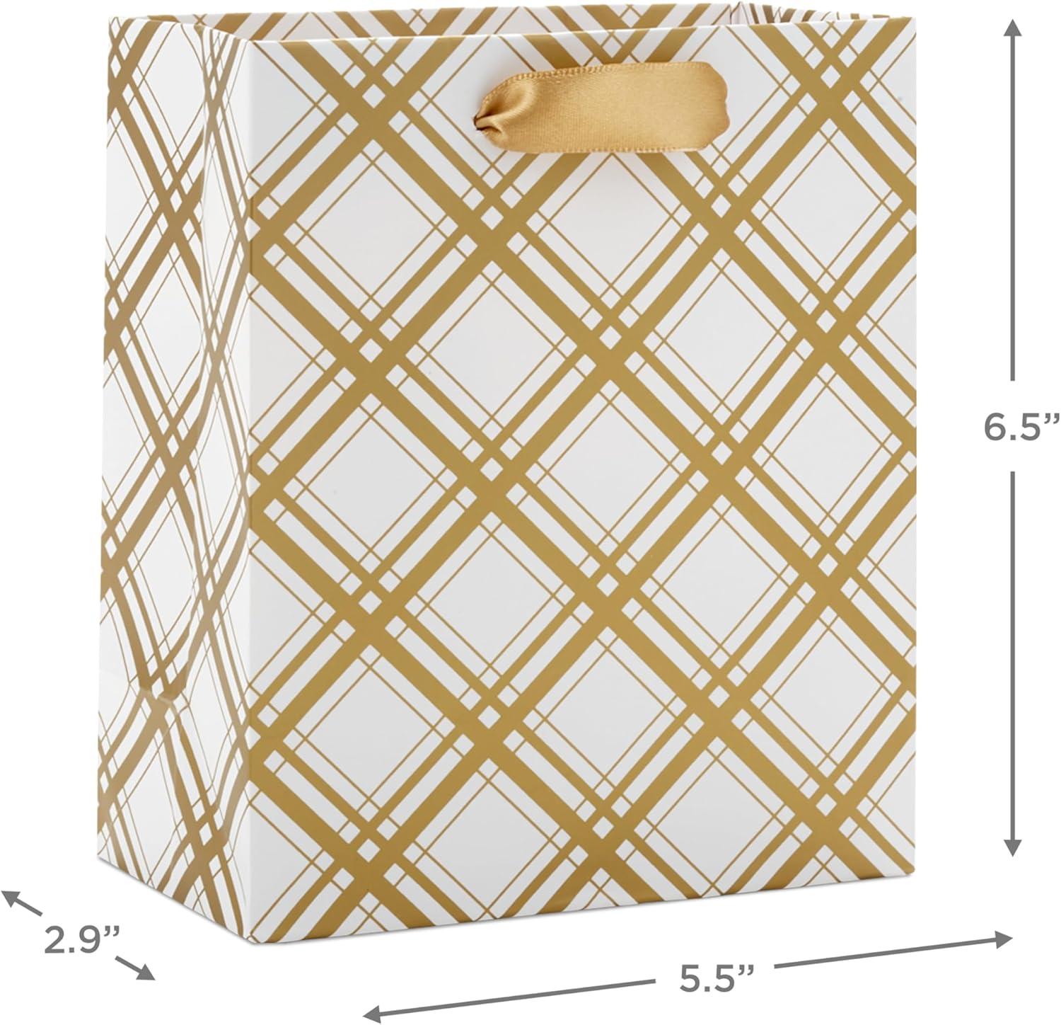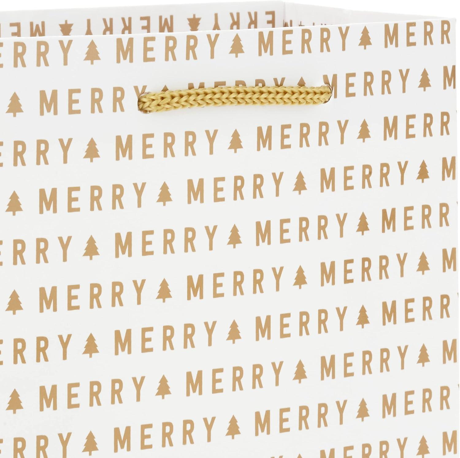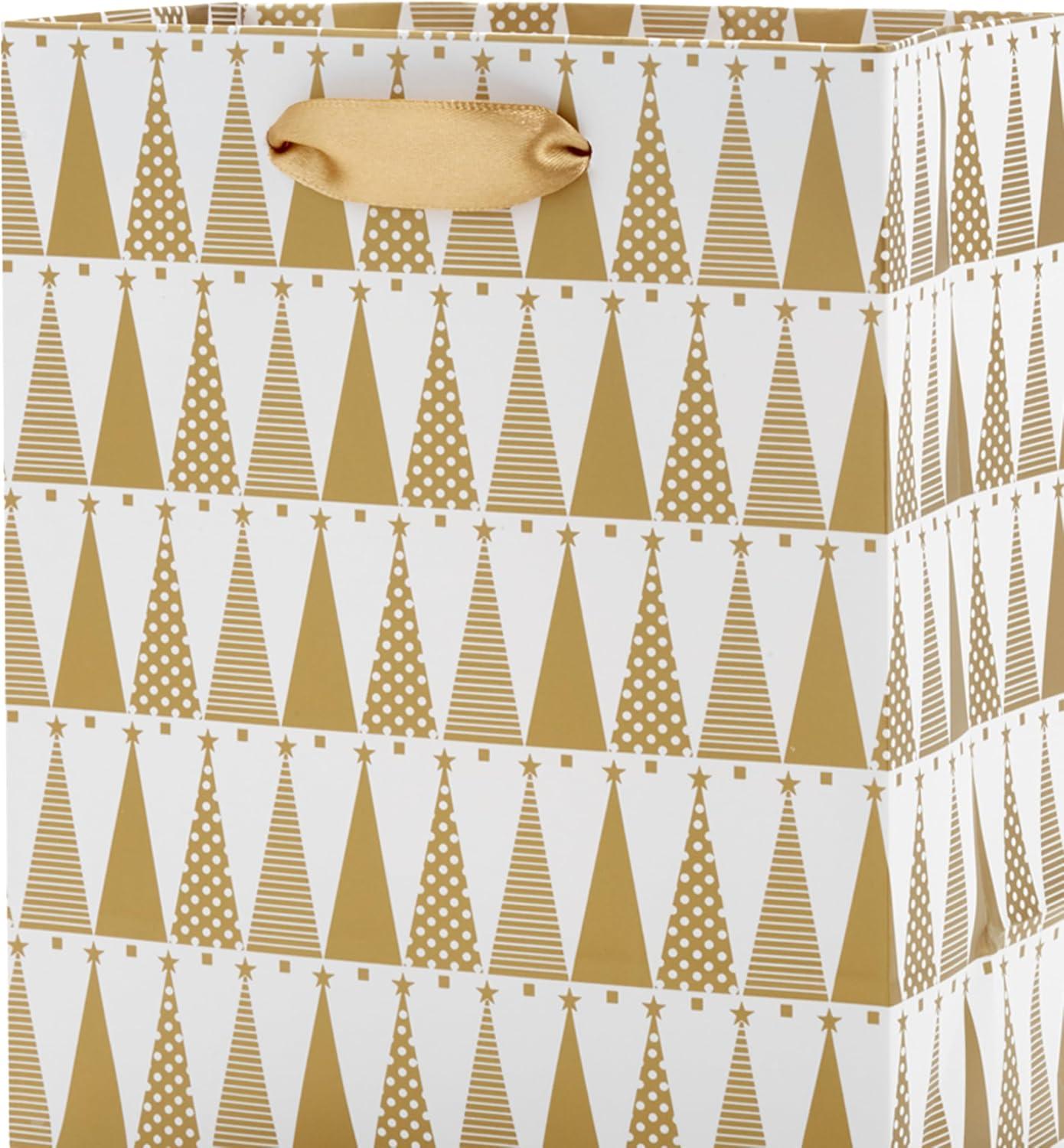 Hallmark 6″ Small Holiday Gift Bag Bundle (6 Bags: Ivory and Gold Trees, Plaid, Merry Christmas)(Ivory and Gold)