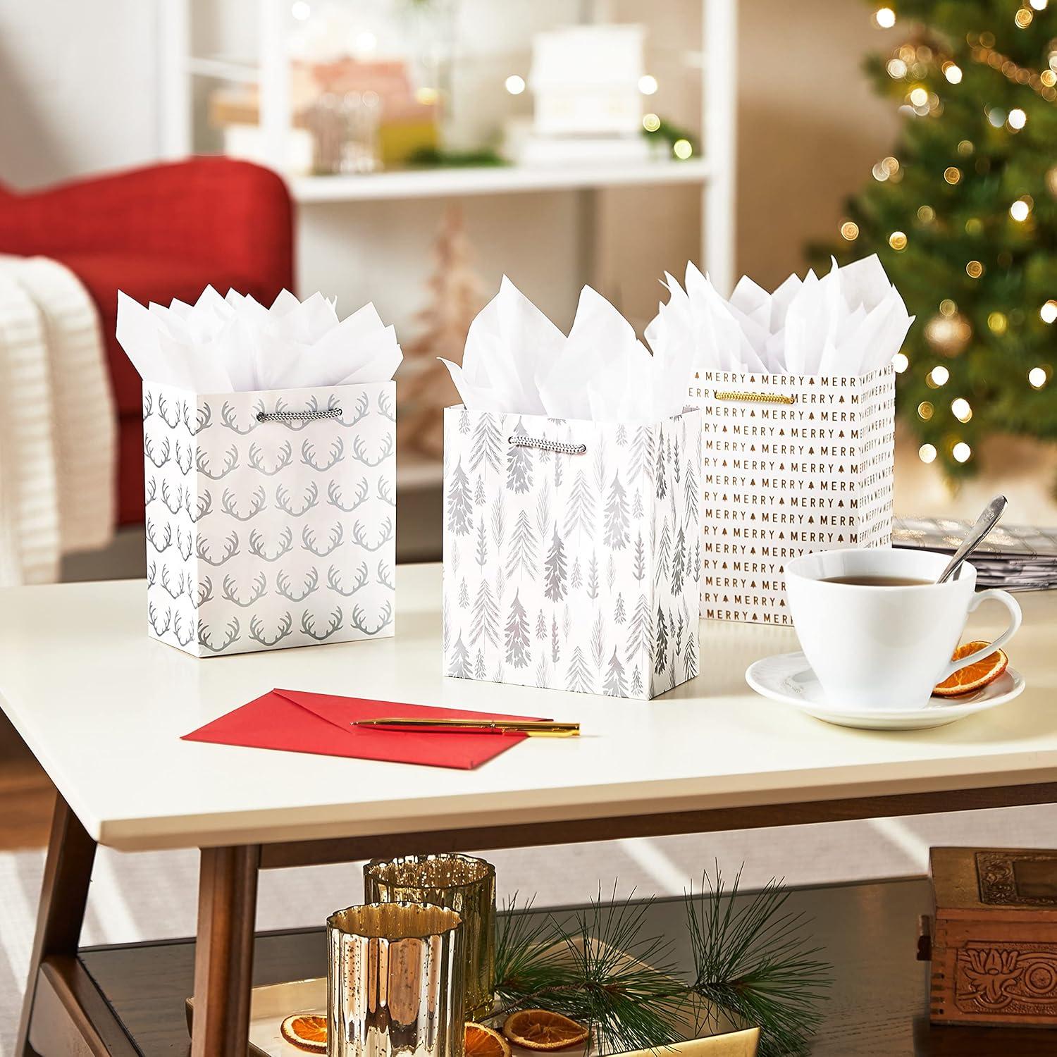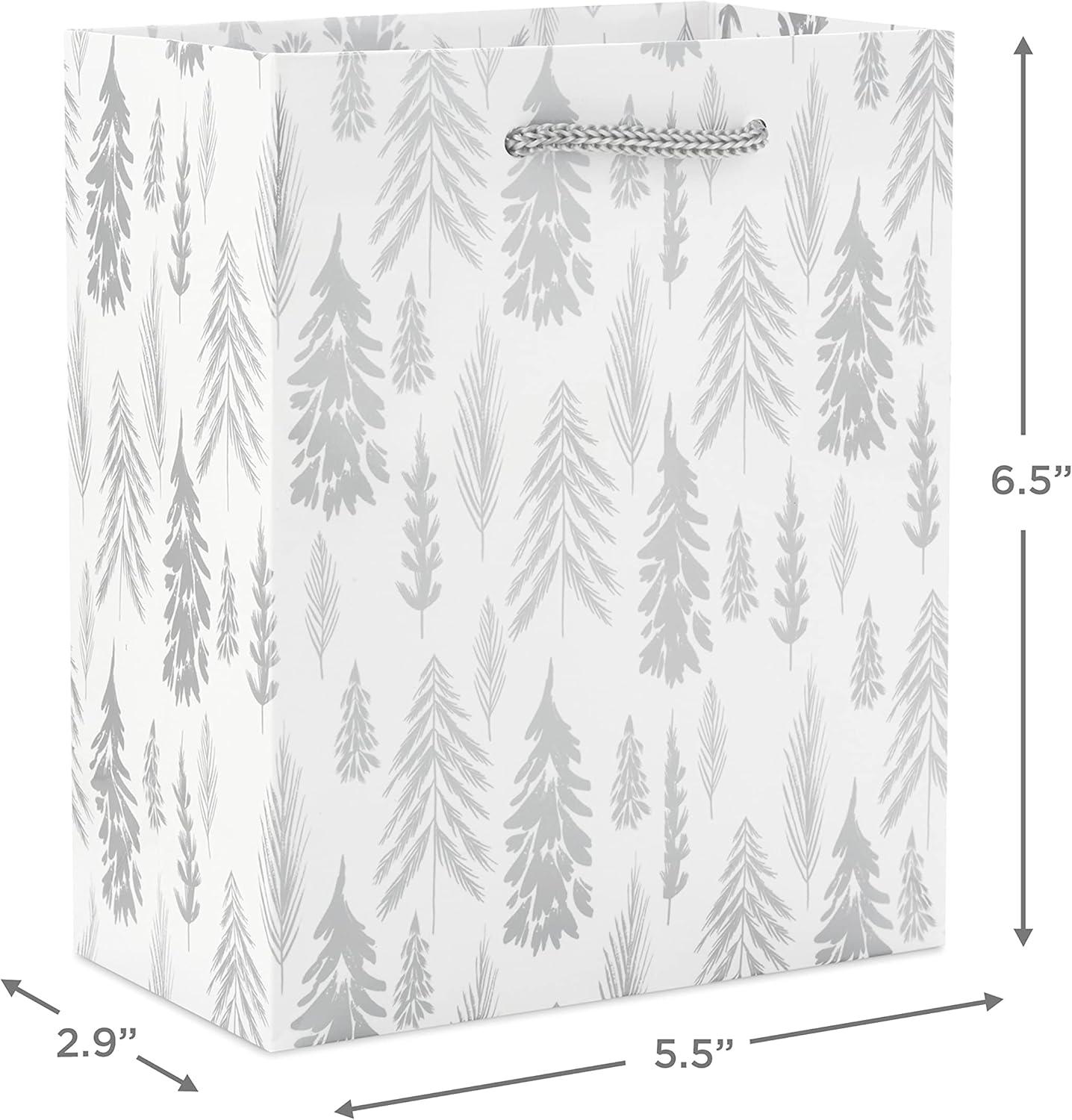 Hallmark 6″ Small Holiday Gift Bag Bundle (6 Bags: Ivory and Gold Trees, Plaid, Merry Christmas)(White Gold and Silver)