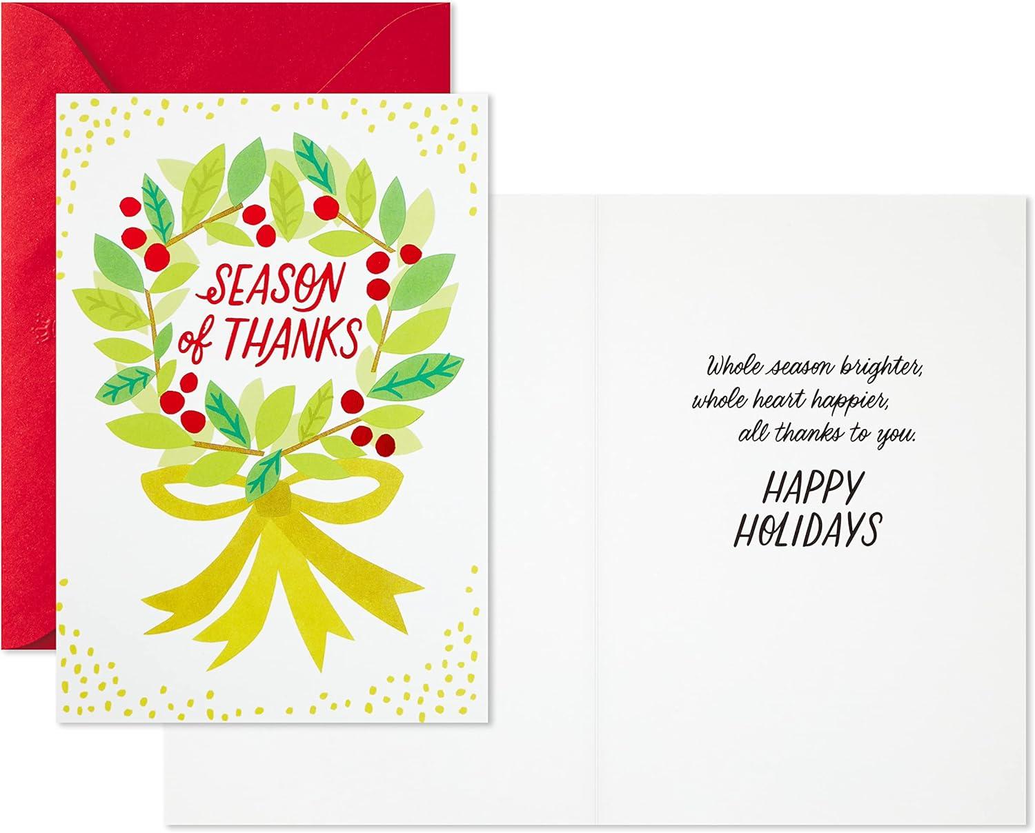 Hallmark Christmas Cards, Thanks to You (6 Holiday Cards with Envelopes)(Season of Thanks 6 Cards with Envelopes)