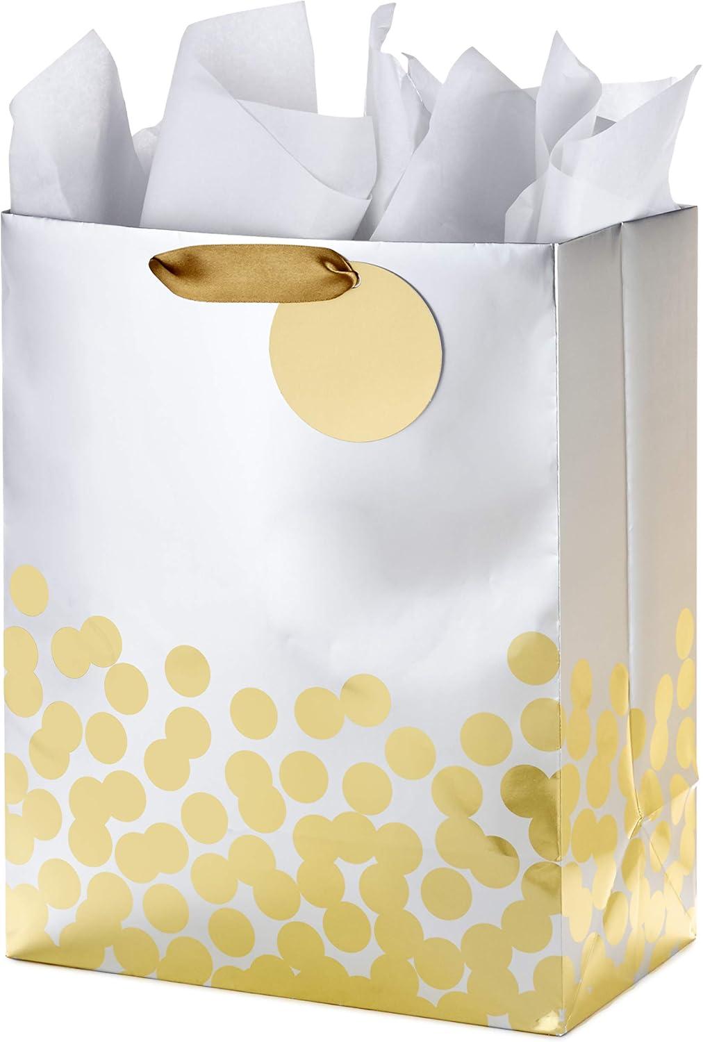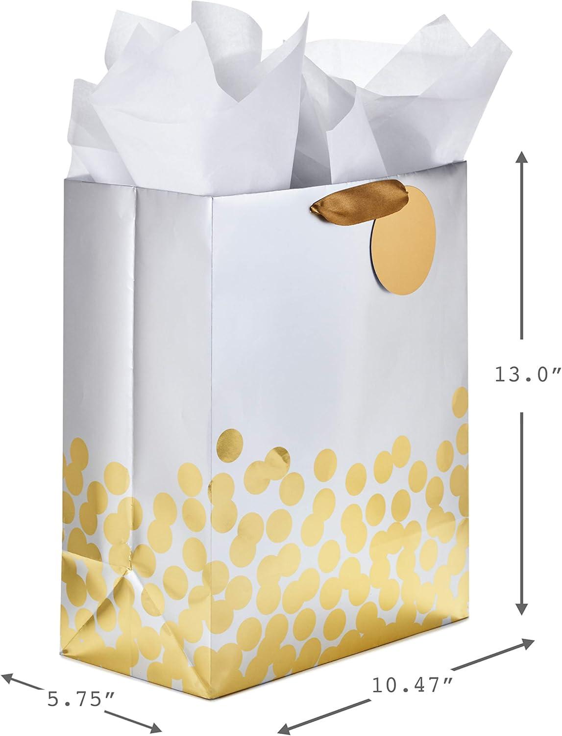 Hallmark Assorted Glittery Gold Christmas Gift Bags (8 Bags: 2 Small 6″, 2 Medium 9″, 2 Large 13″, 2 Bottle 13″) Angels, Mint Green, Leaves, Happy Holidays(Gold Dots)