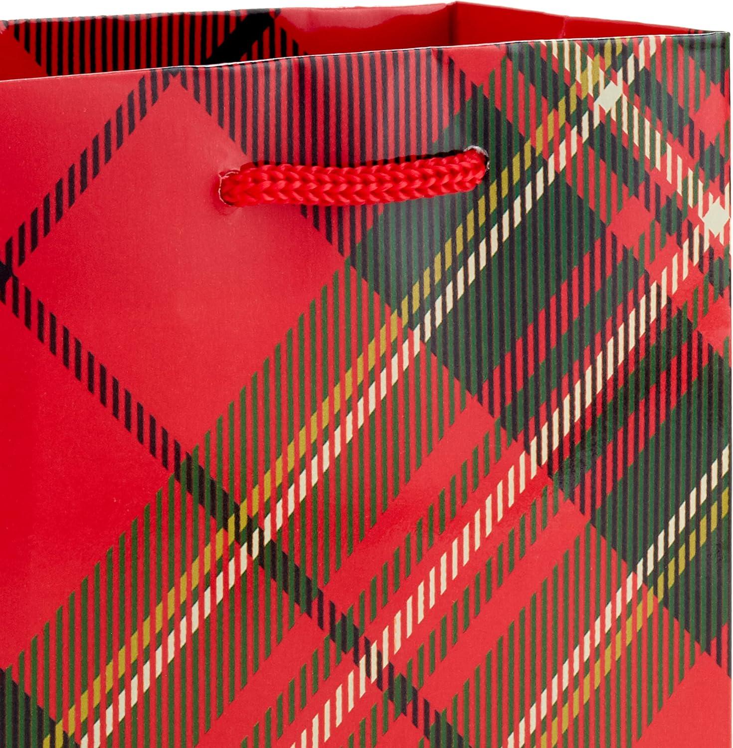 Hallmark Assorted Christmas Gift Bags, Recyclable Kraft Brown with Snowflake, Plaid and Trees (8 Bags: 3 Small 6″, 3 Medium 9″, 2 Large 13″) for Holiday Parties, Hanukkah, Winter Weddings(Kraft Plaid Snowflakes Mittens)