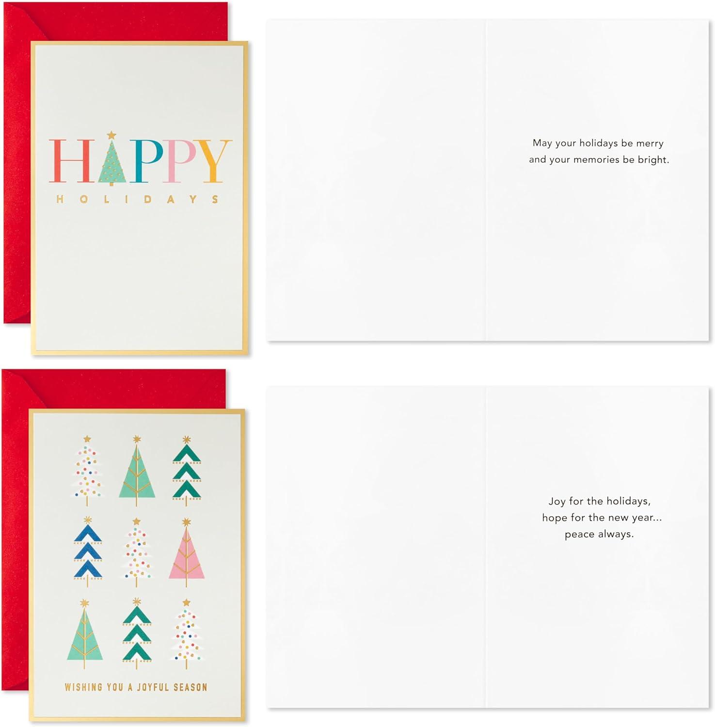 Hallmark Boxed Christmas, Rainbow Trees (16 Cards and 17 Envelopes)(Glitter Trees)