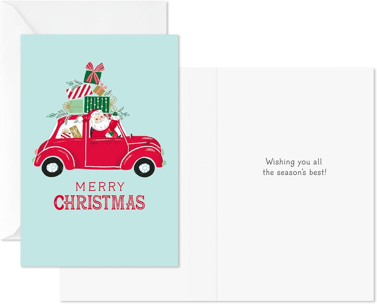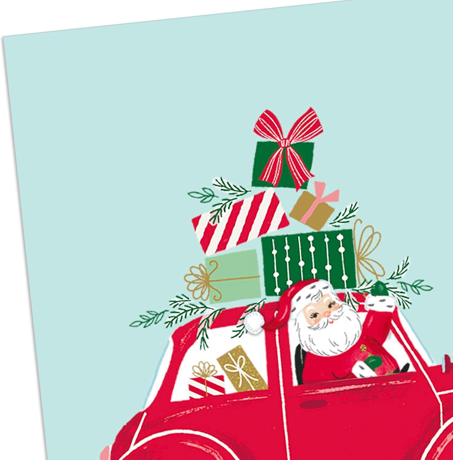Hallmark Christmas Cards (6 Cards with Envelopes) Santa Driving Red Car(Joyful Season)