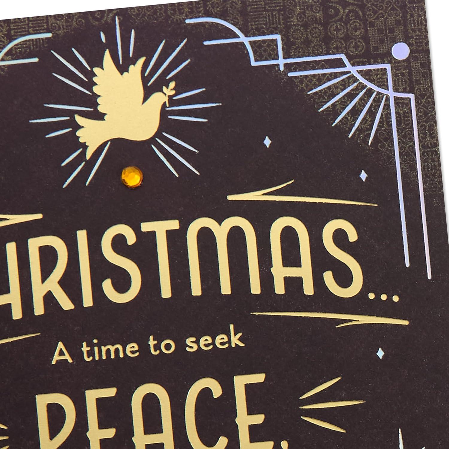 Hallmark Mahogany Religious Christmas Card (Peace, Faith, Joy) Purple and Gold Art Deco Peace Dove(A Very Blessed Christmas)