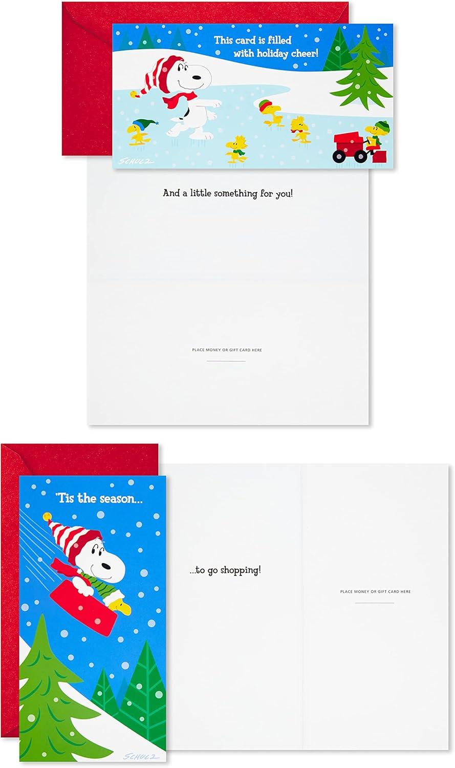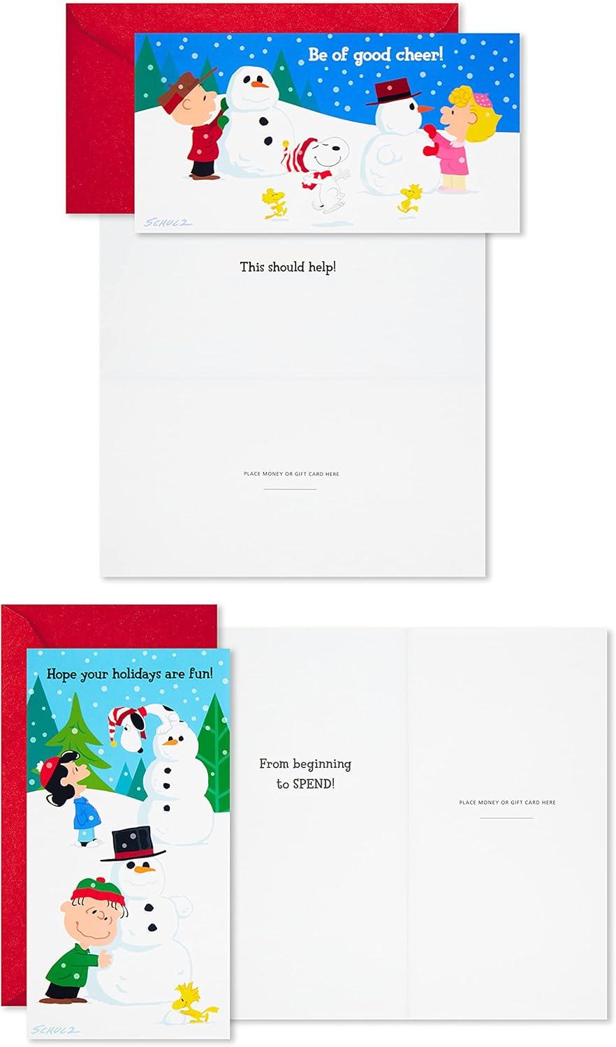 Hallmark Money and Gift Card Holder Christmas Card Pack (10 Money Holder Cards with Envelopes) Snowman, Mouse with Presents for Kids and Grandchildren(Peanuts)