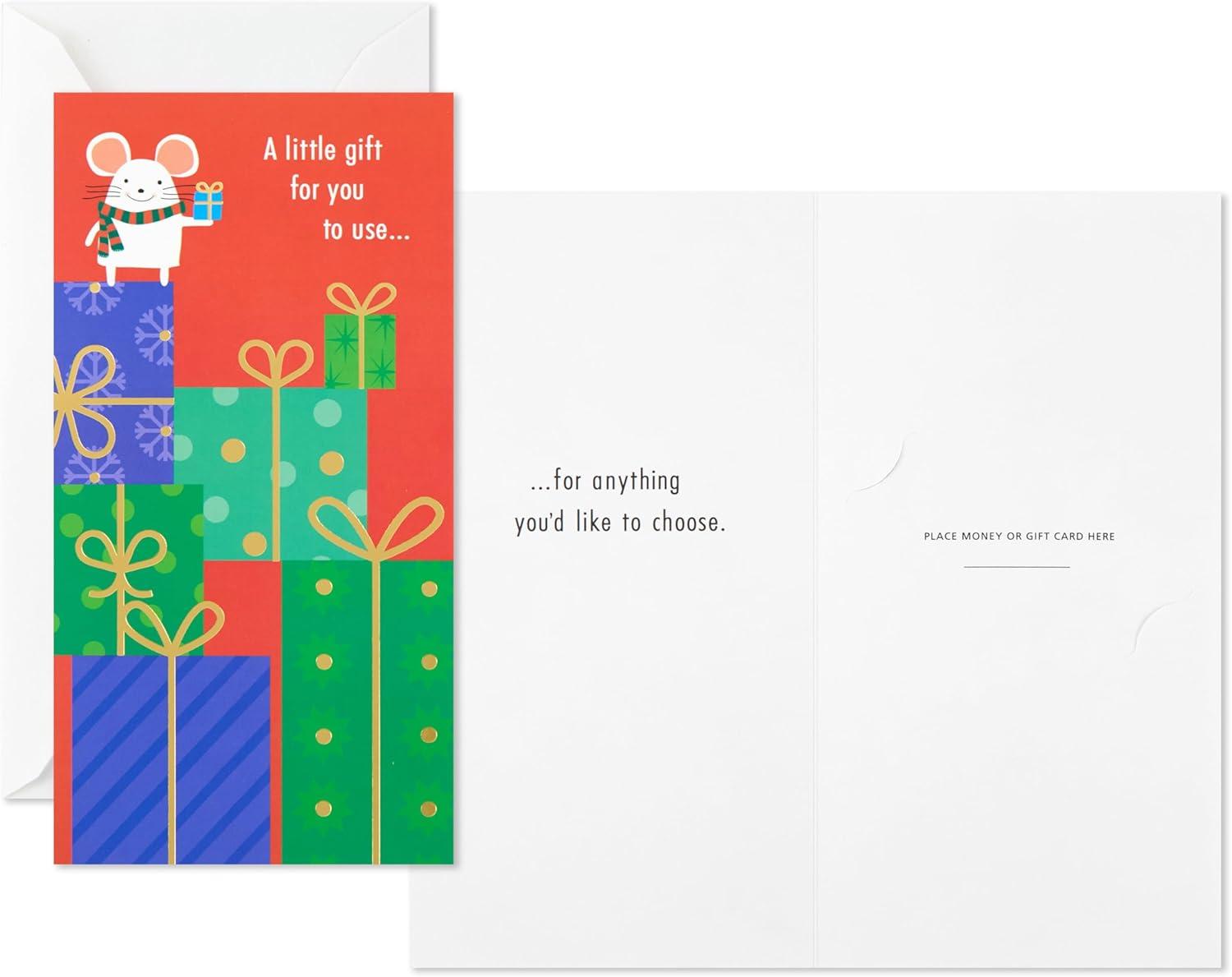 Hallmark Money and Gift Card Holder Christmas Card Pack (10 Money Holder Cards with Envelopes) Snowman, Mouse with Presents for Kids and Grandchildren(Snowman & Mouse)