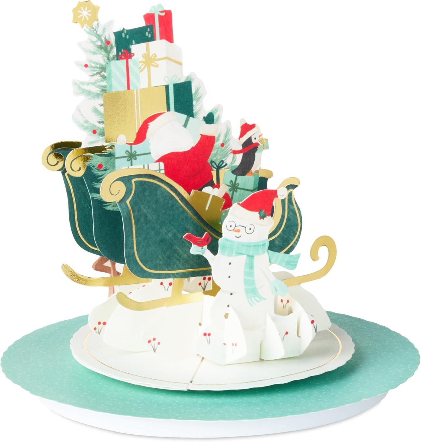 Hallmark Paper Wonder Pop Up Christmas Card with Sound and Motion (Spinning Santa in Sleigh)(Santa’s Sleigh)