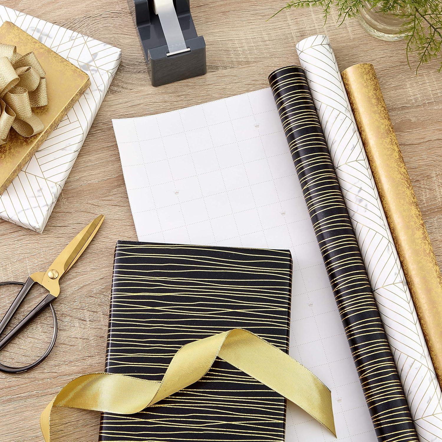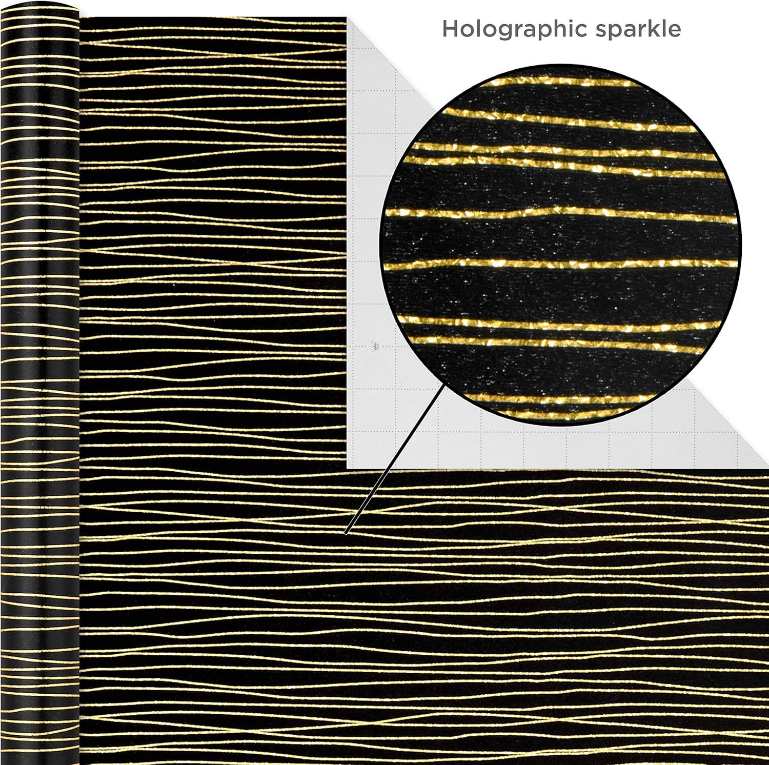 Hallmark Black Christmas Wrapping Paper with Cut Lines on Reverse (3 Rolls: 120 sq. ft. ttl) Retro Santa, Black and White Buffalo Plaid, Train and Trees (0005JXW1077)(Charcoal Black Snowmen Gold Plaid Gray Dots)