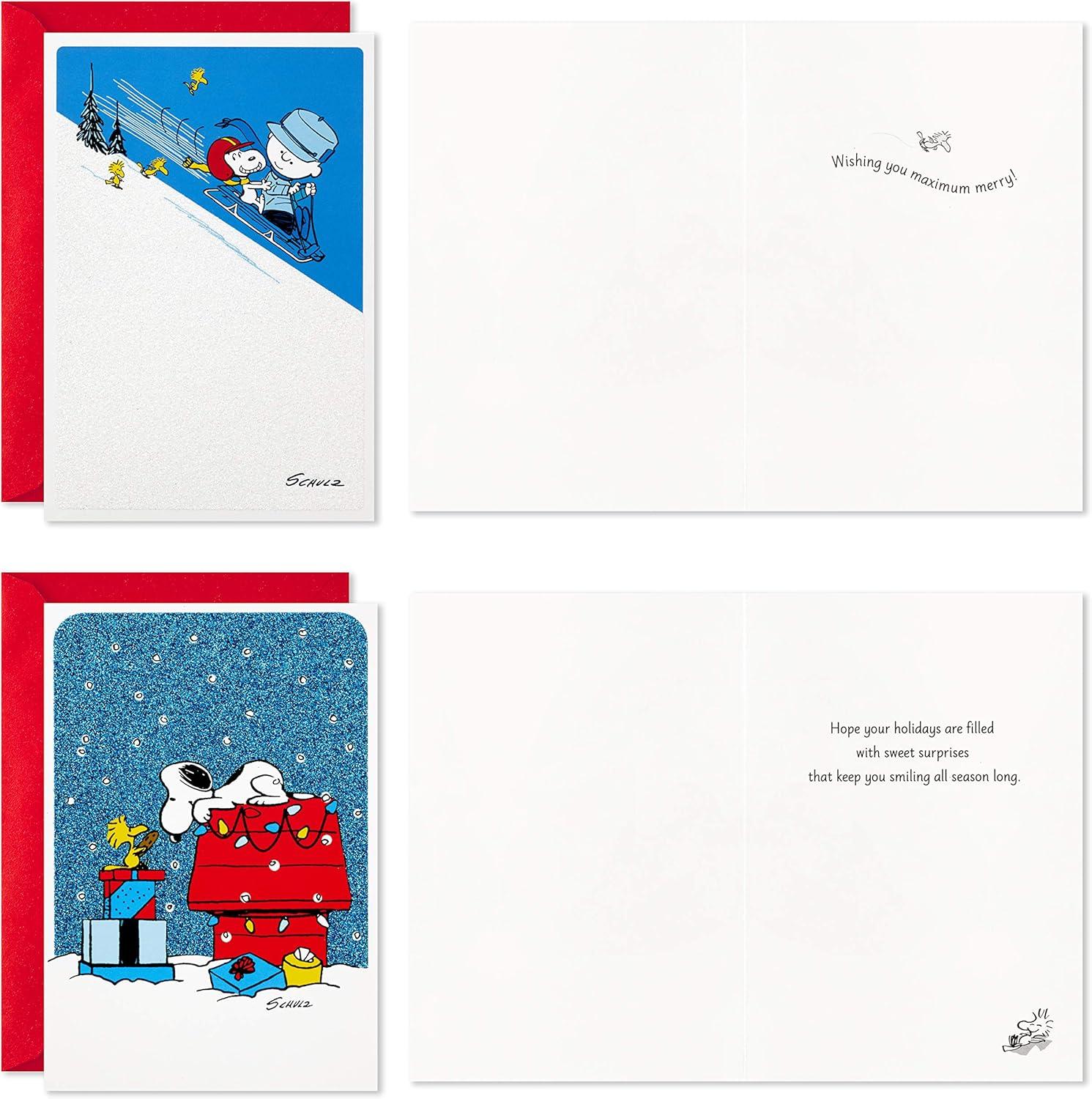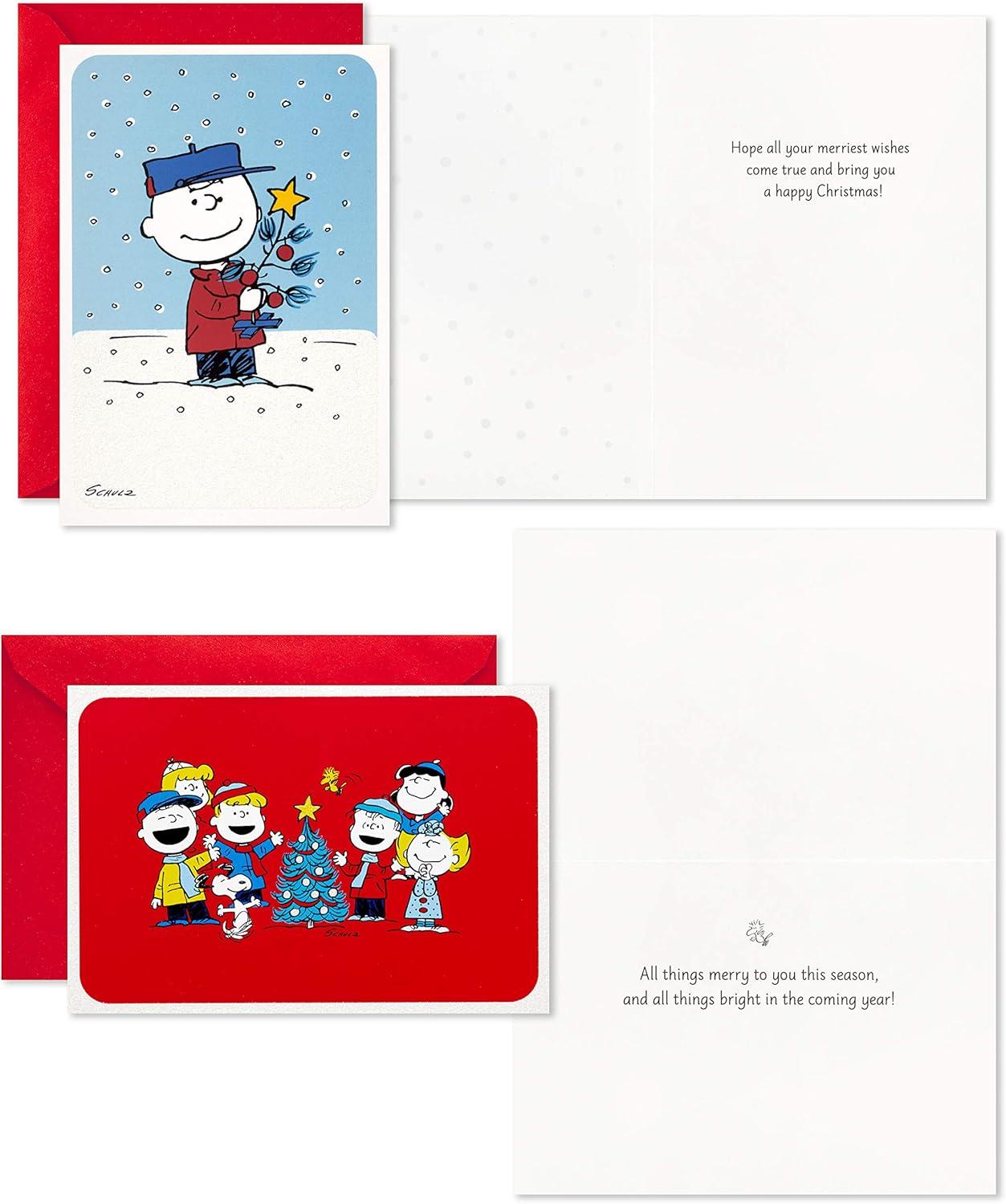 Hallmark Peanuts Boxed Christmas Cards Assortment, Classic Comics (4 Designs, 16 Cards and Envelopes)(Peanuts Assortment)
