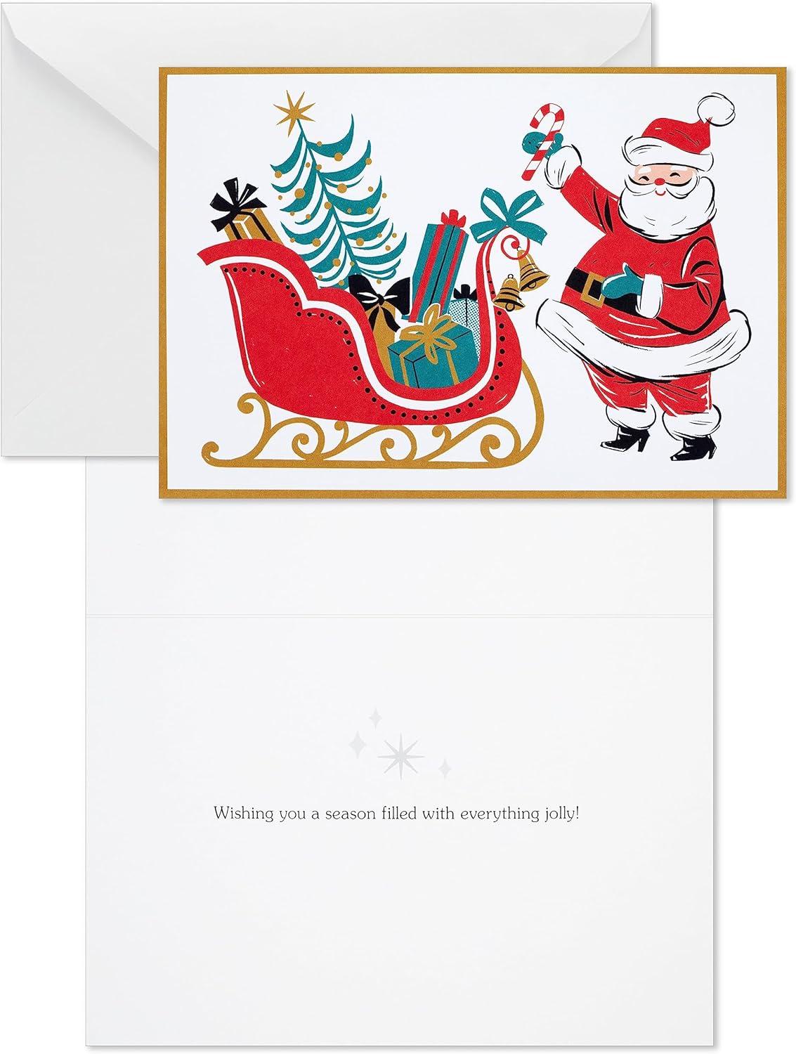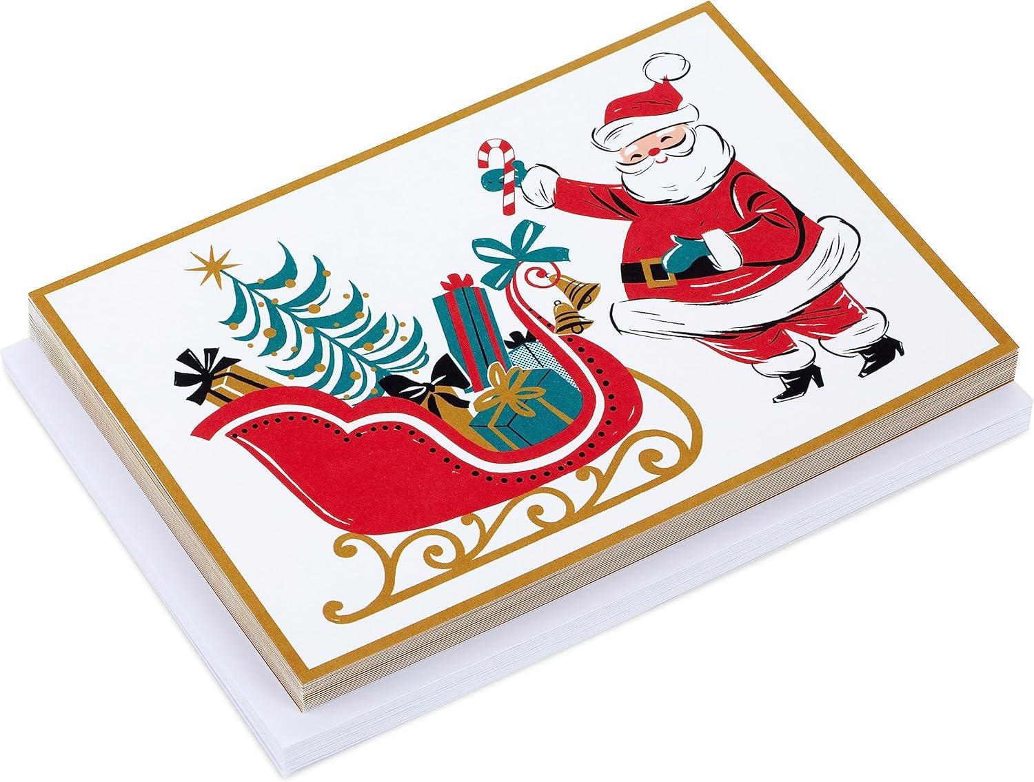 Hallmark Retro Santa Boxed Christmas Cards (16 Cards and Envelopes) Red, Black, Gold, Green, White(16 Cards – Retro Santa)