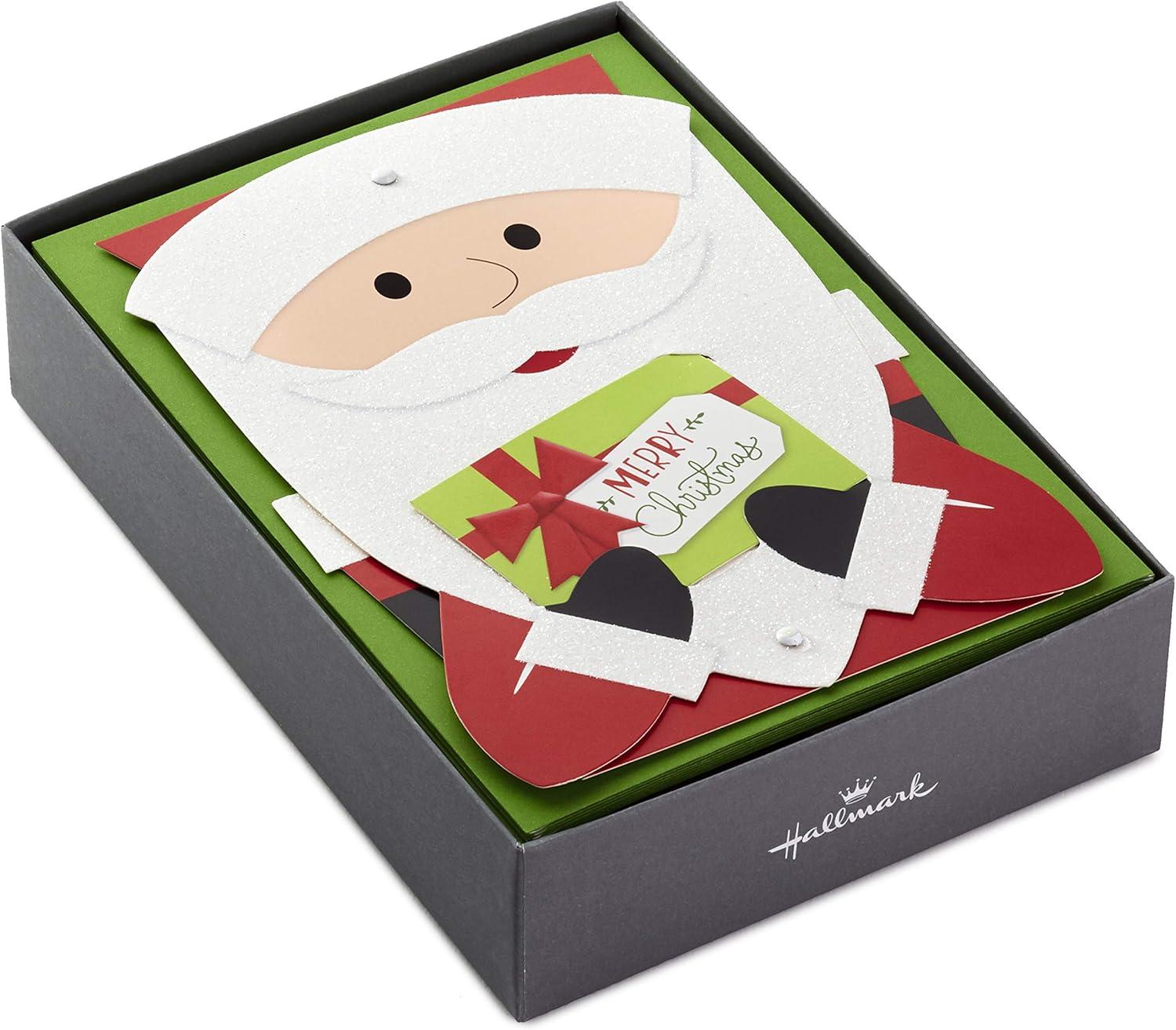 Hallmark Retro Santa Boxed Christmas Cards (16 Cards and Envelopes) Red, Black, Gold, Green, White(Santa)