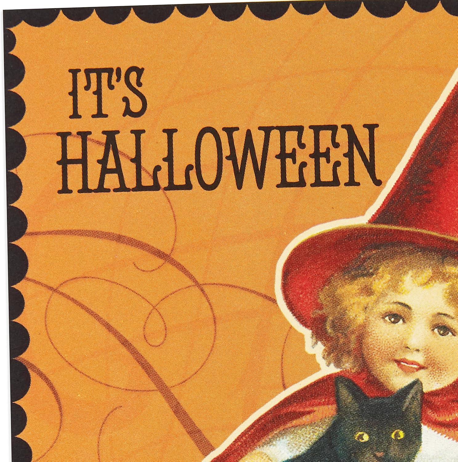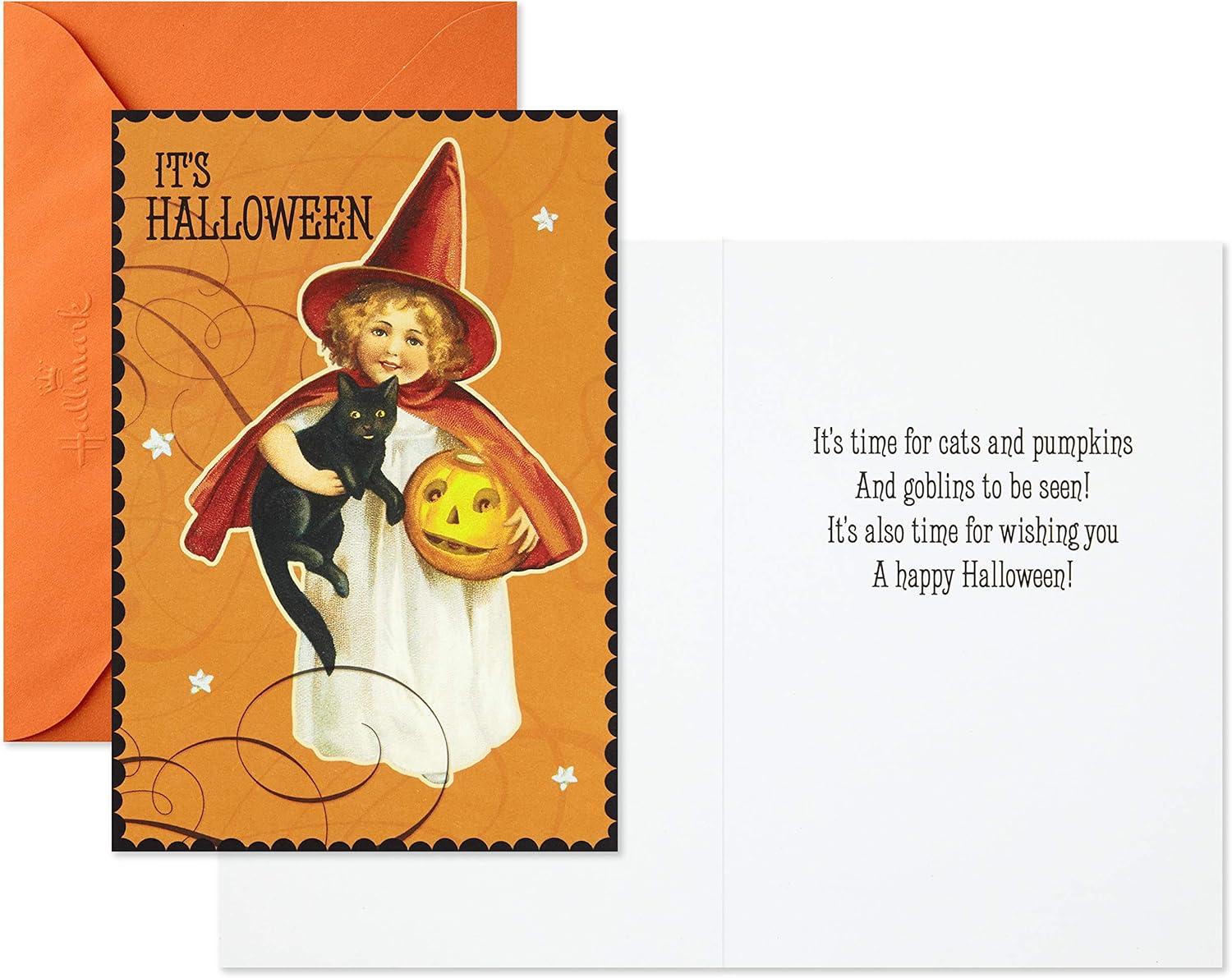 Hallmark Vintage Halloween Cards (8 Cards with Envelopes) Cute Witch with Black Cat and Jack-o-Lantern(Cute Vintage Witch)