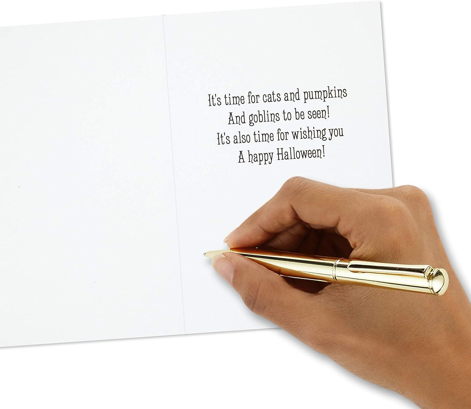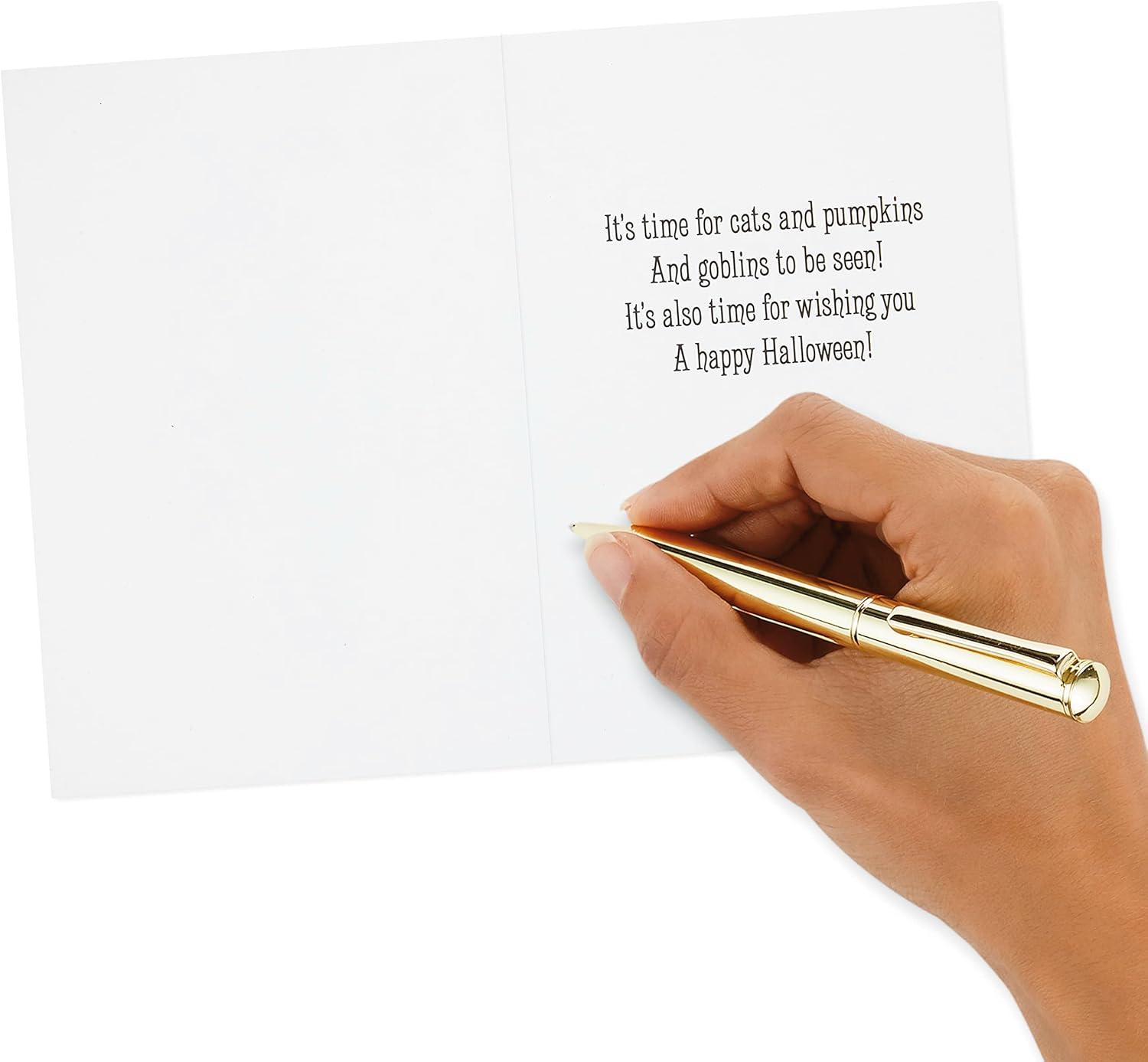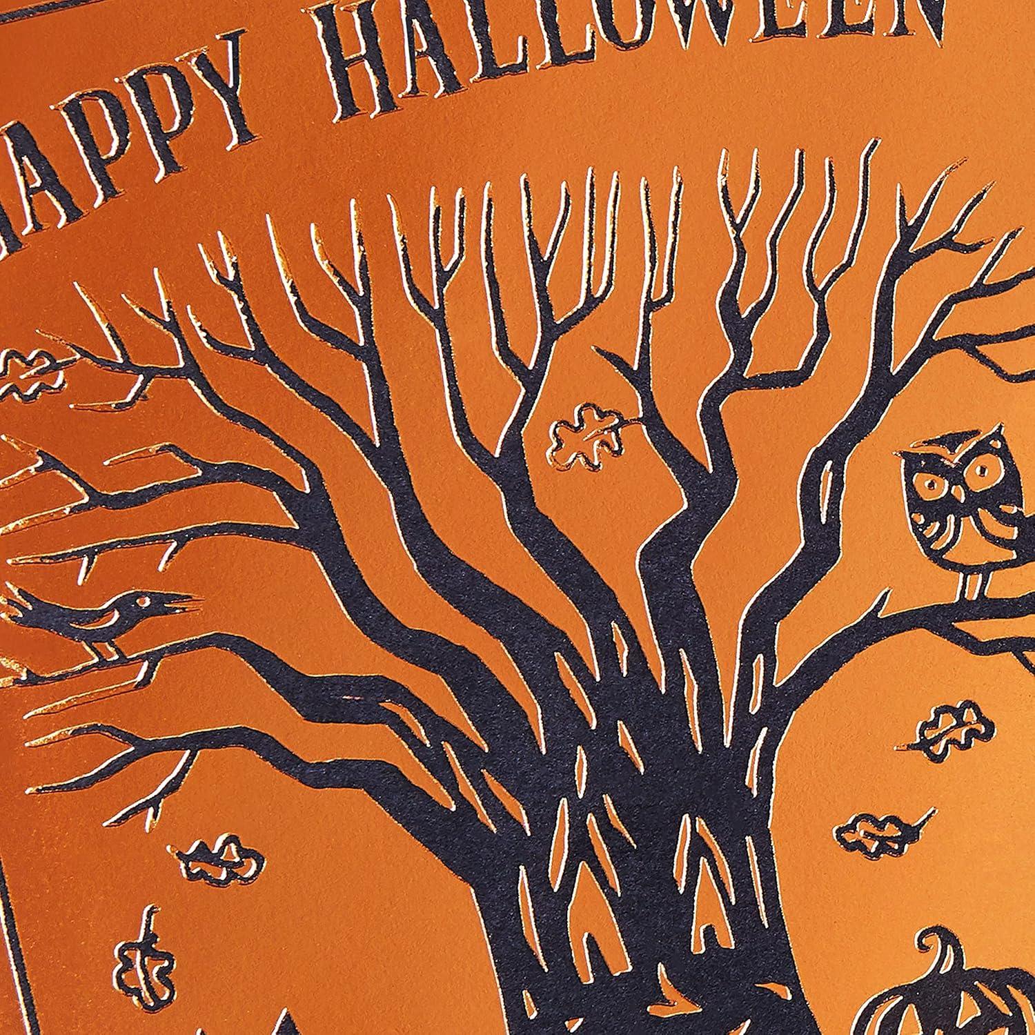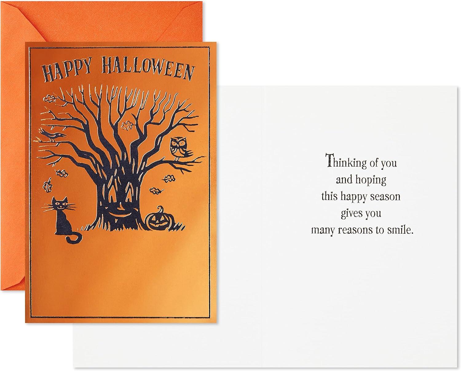 Hallmark Vintage Halloween Cards (8 Cards with Envelopes) Cute Witch with Black Cat and Jack-o-Lantern(Halloween Tree)