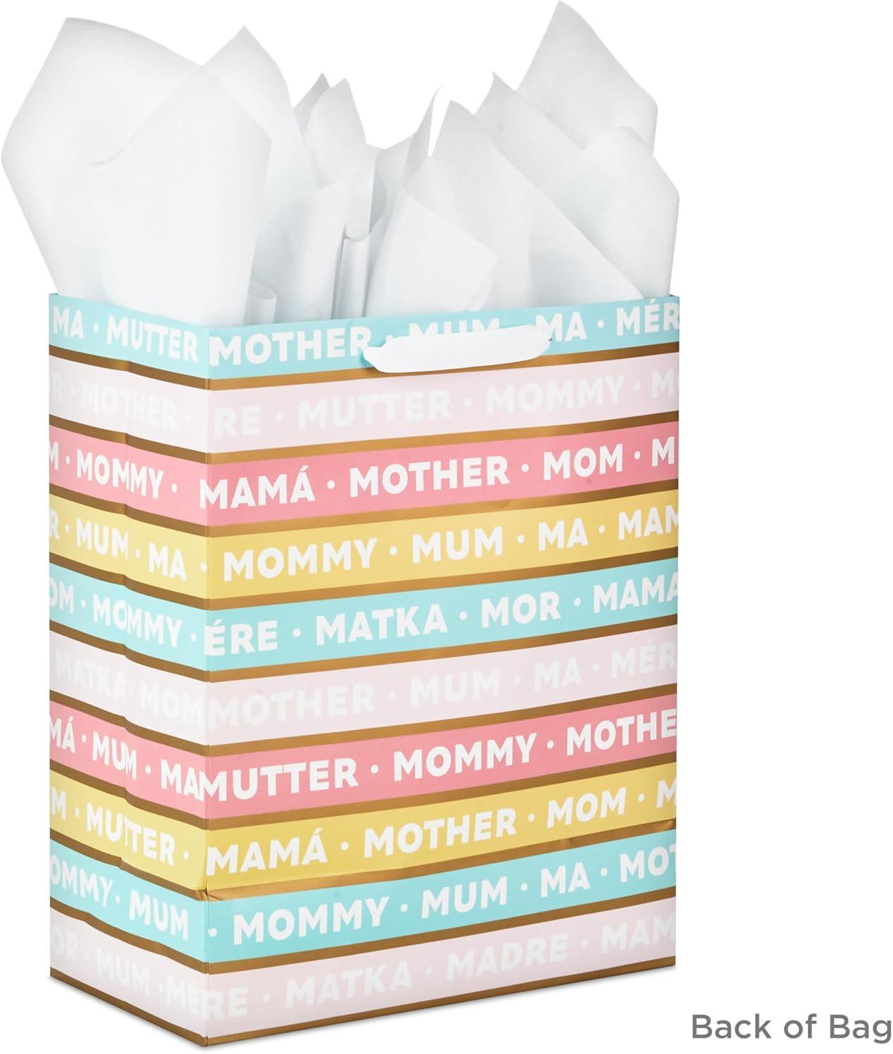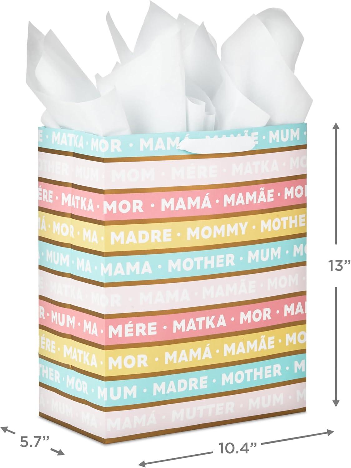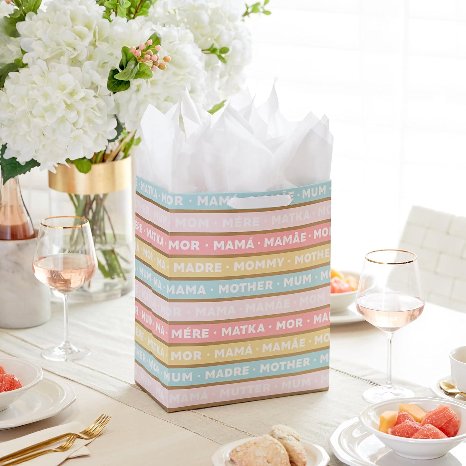 Hallmark 10″ Large Mother’s Day Gift Bag with Tissue Paper (Vintage Floral with Pink Bow) for Easter, Bridal Showers, Graduations, New Moms(Stripes)
