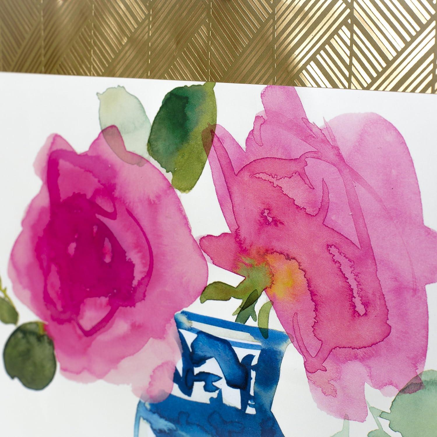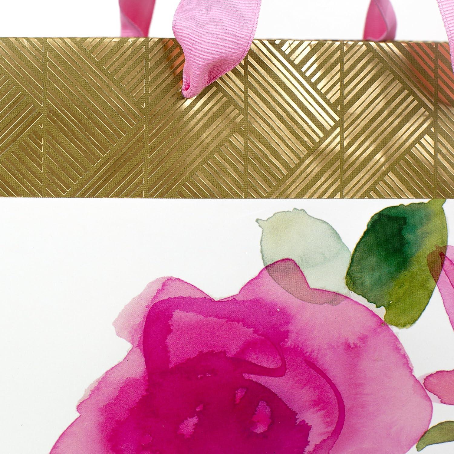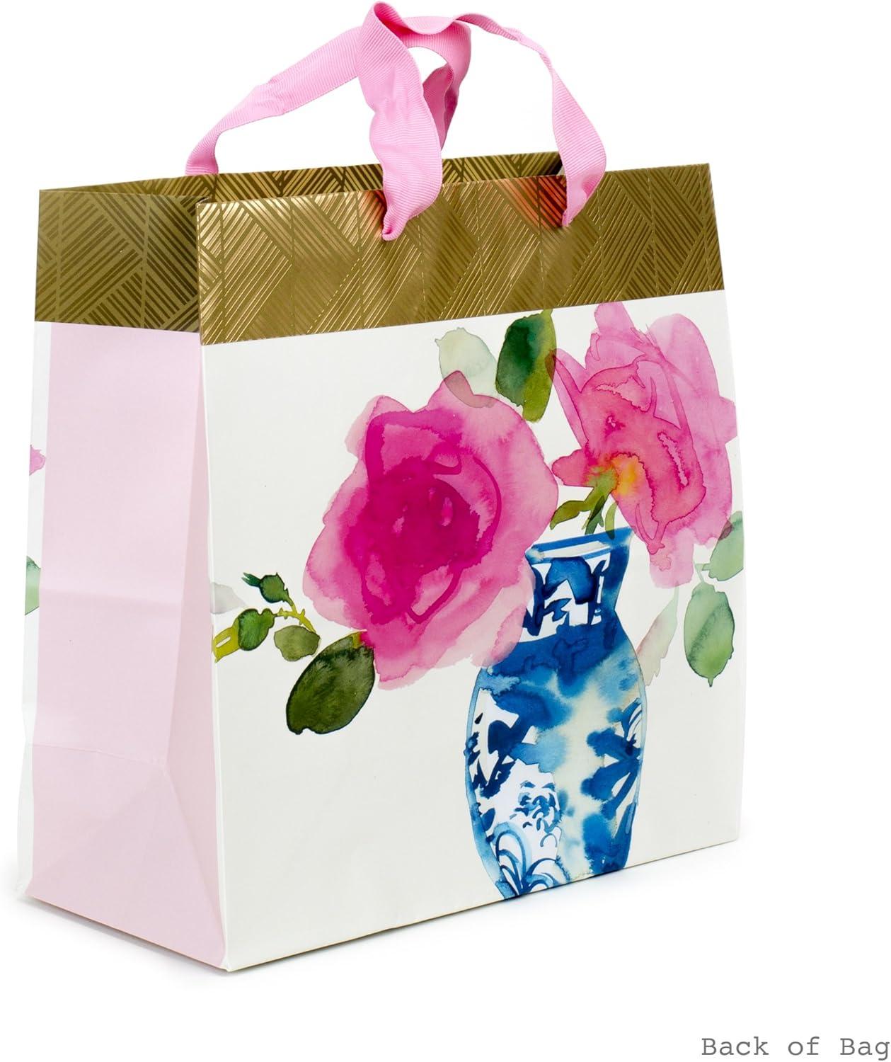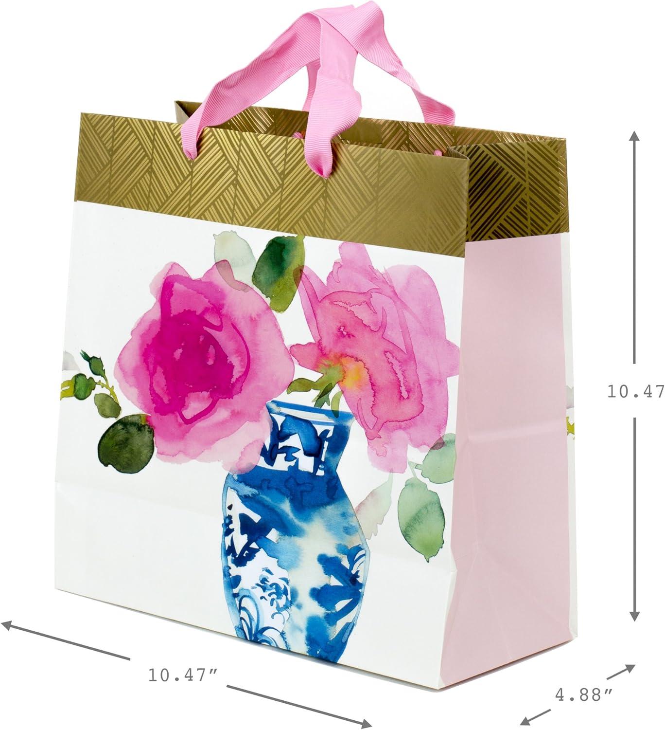 Hallmark 10″ Large Square Gift Bag (Watercolor Dots, Just for You) for Birthdays, Mothers Day, Easter, Graduations, Retirements and More(Flower and Vase)