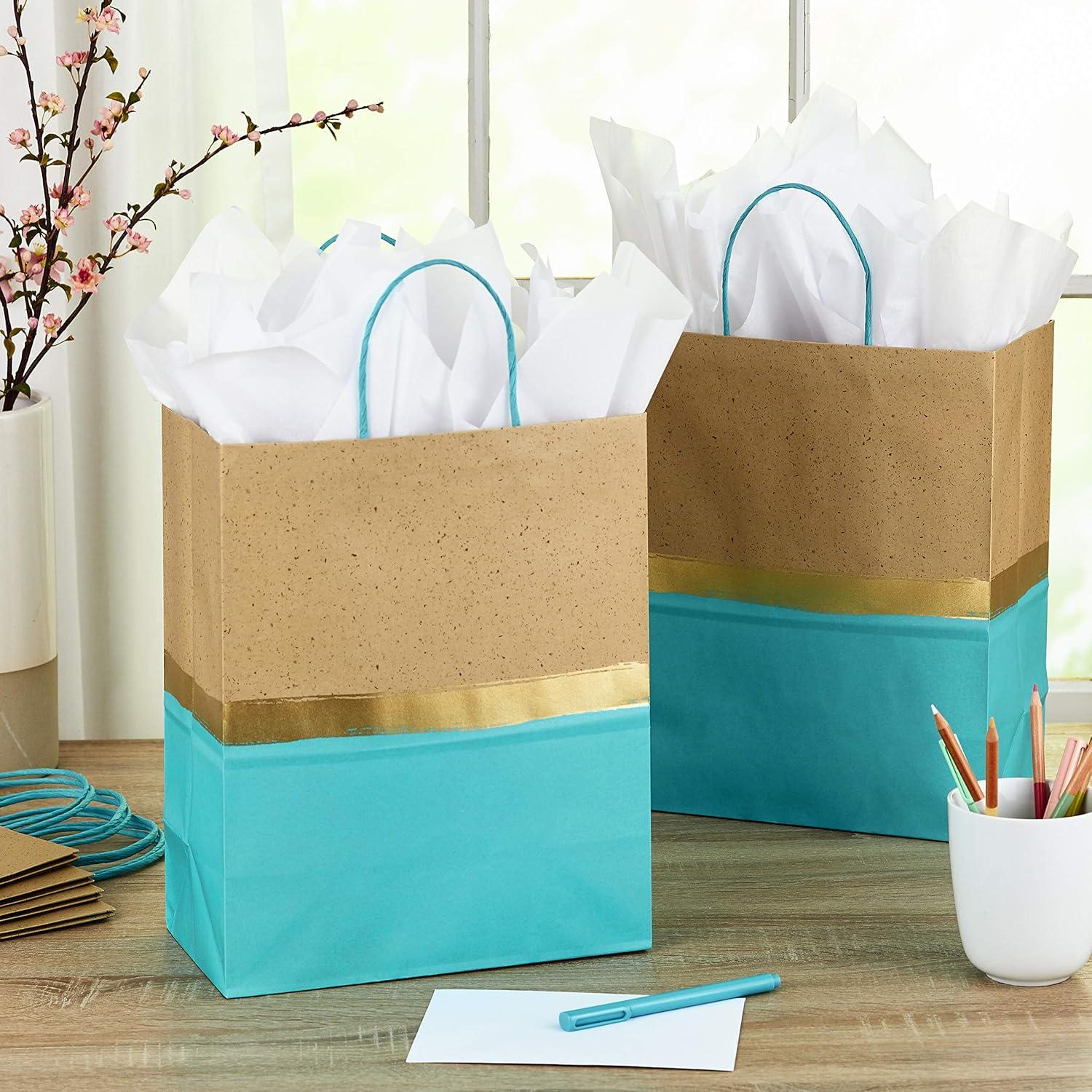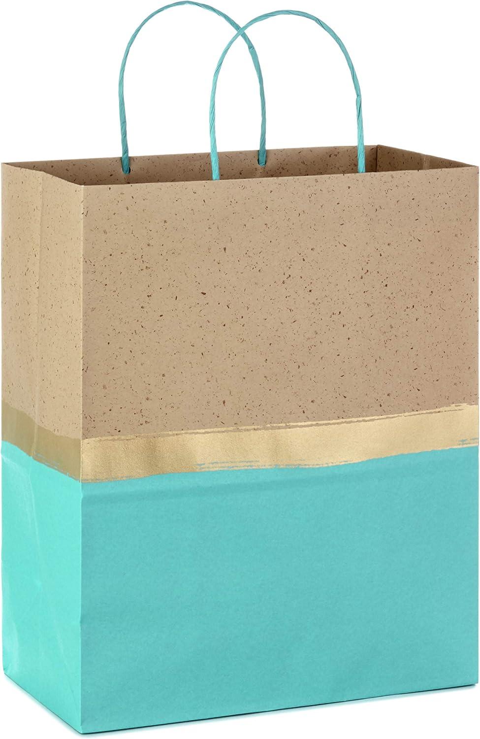 Hallmark 13″ Large Paper Gift Bags (Pack of 6 – Turquoise & Kraft) for Birthdays, Easter, Weddings, Mother’s Day, Baby Showers, Bridal Showers or Any Occasion(Turquoise)