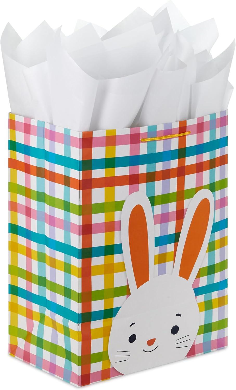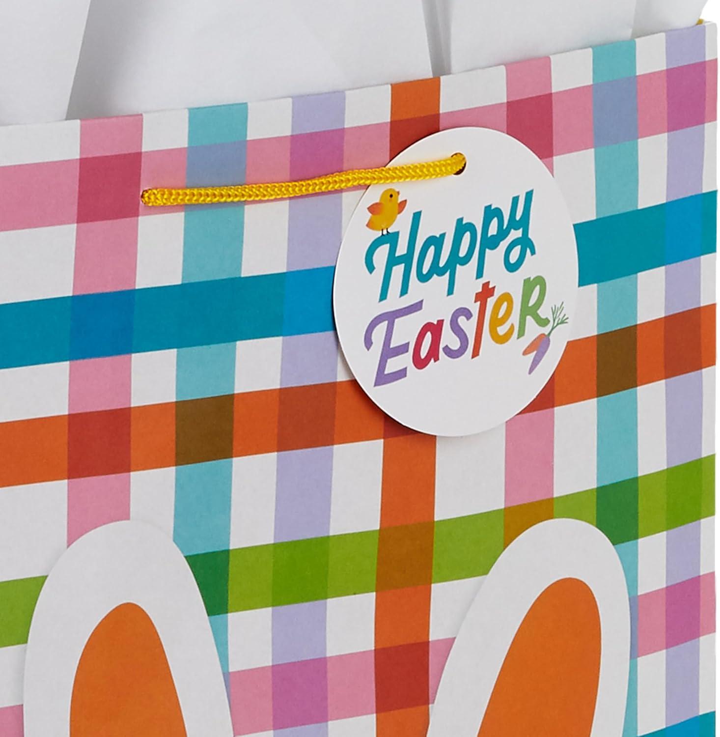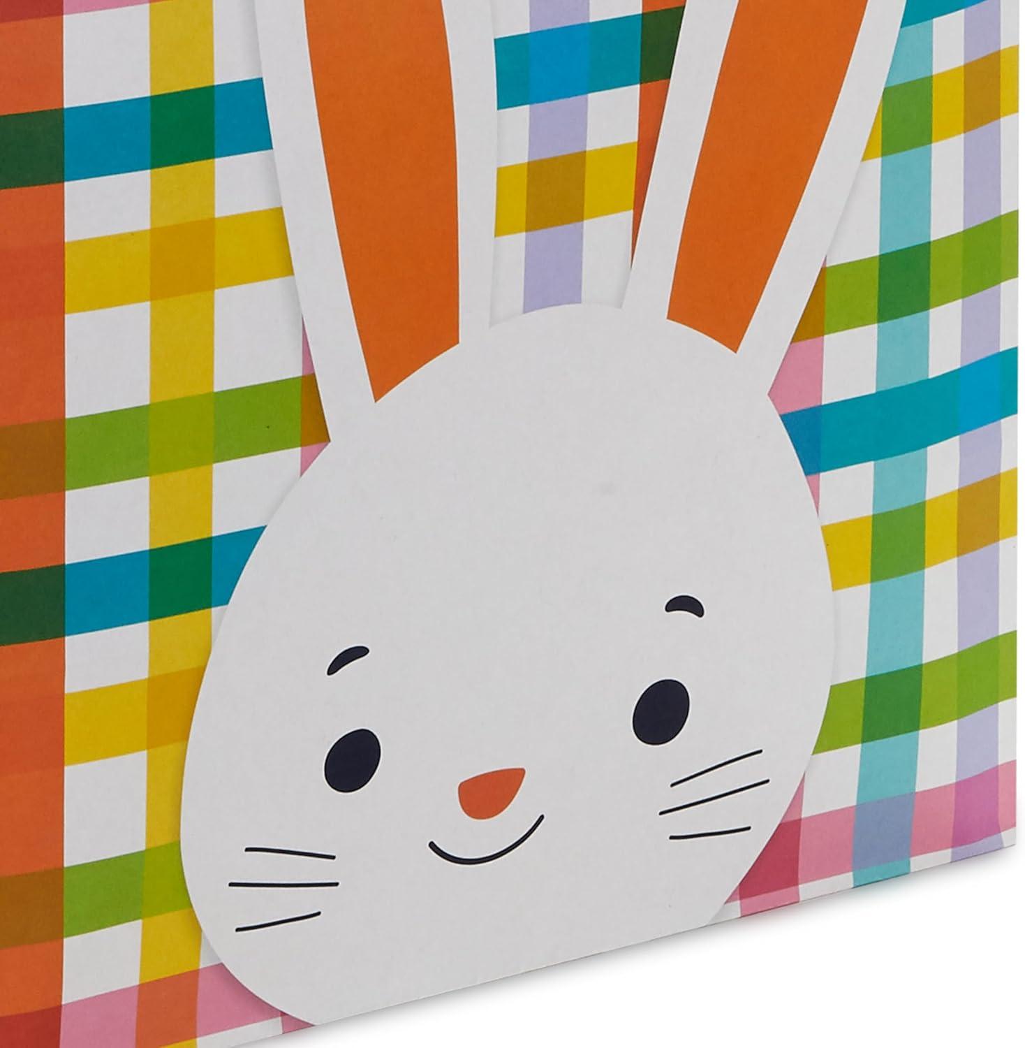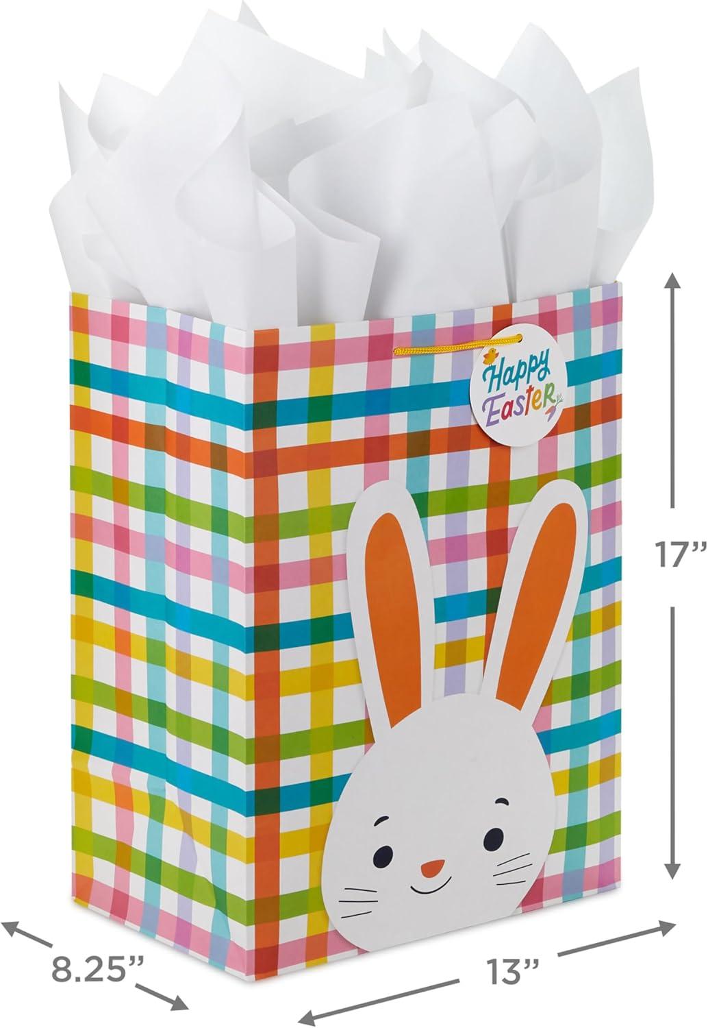 Hallmark 17″ Extra Large Easter Gift Bag with Tissue Paper (Bunny Face, Rainbow Plaid) for Kids Presents, Easter Baskets