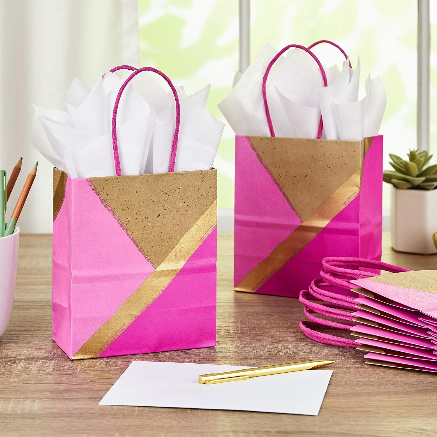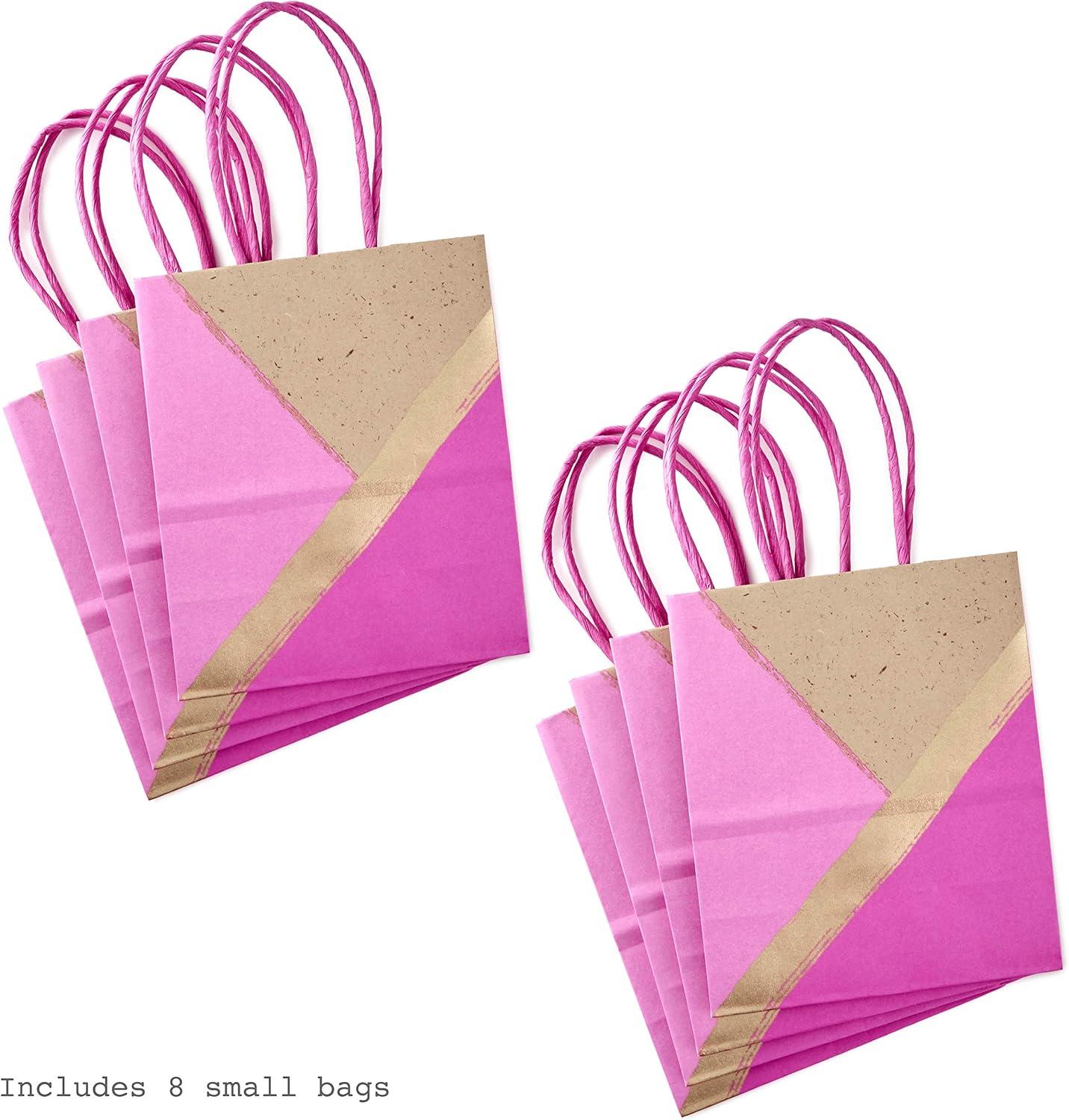 Hallmark 6″ Small Paper Gift Bags, 8-Pack (White and Kraft) for Birthdays, Christmas, Weddings, Graduations, Baby Showers, Bridal Showers, Care Packages and More(Pink Gold)