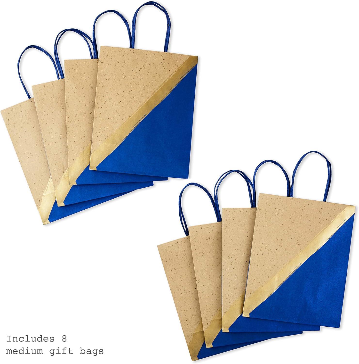 Hallmark 9″ Medium Paper Gift Bags, 8-Pack (Pink & Kraft) for Easter, Birthdays, Mother’s Day, Weddings, Baby Showers, Bridal Showers, Any Occasion(Blue)