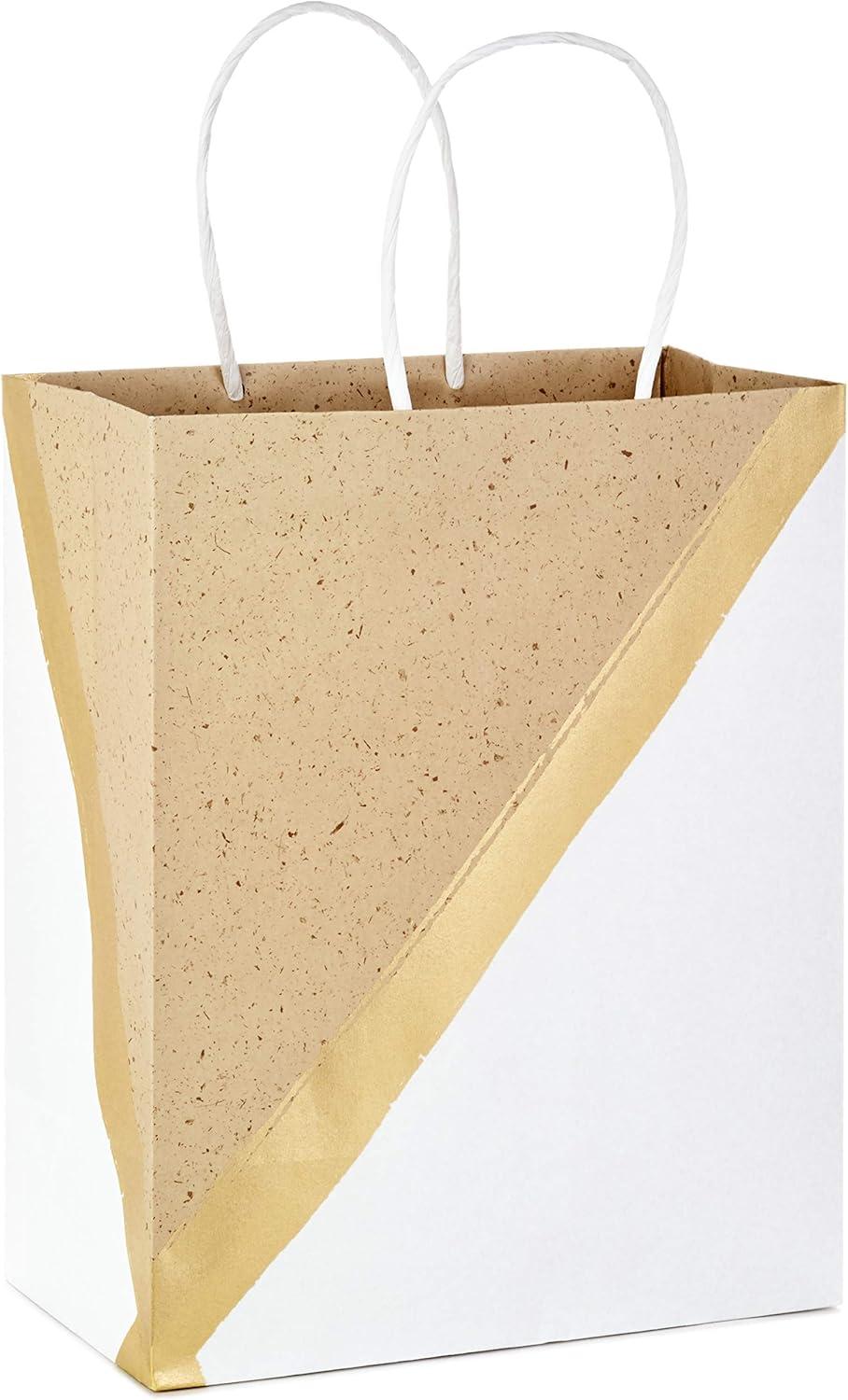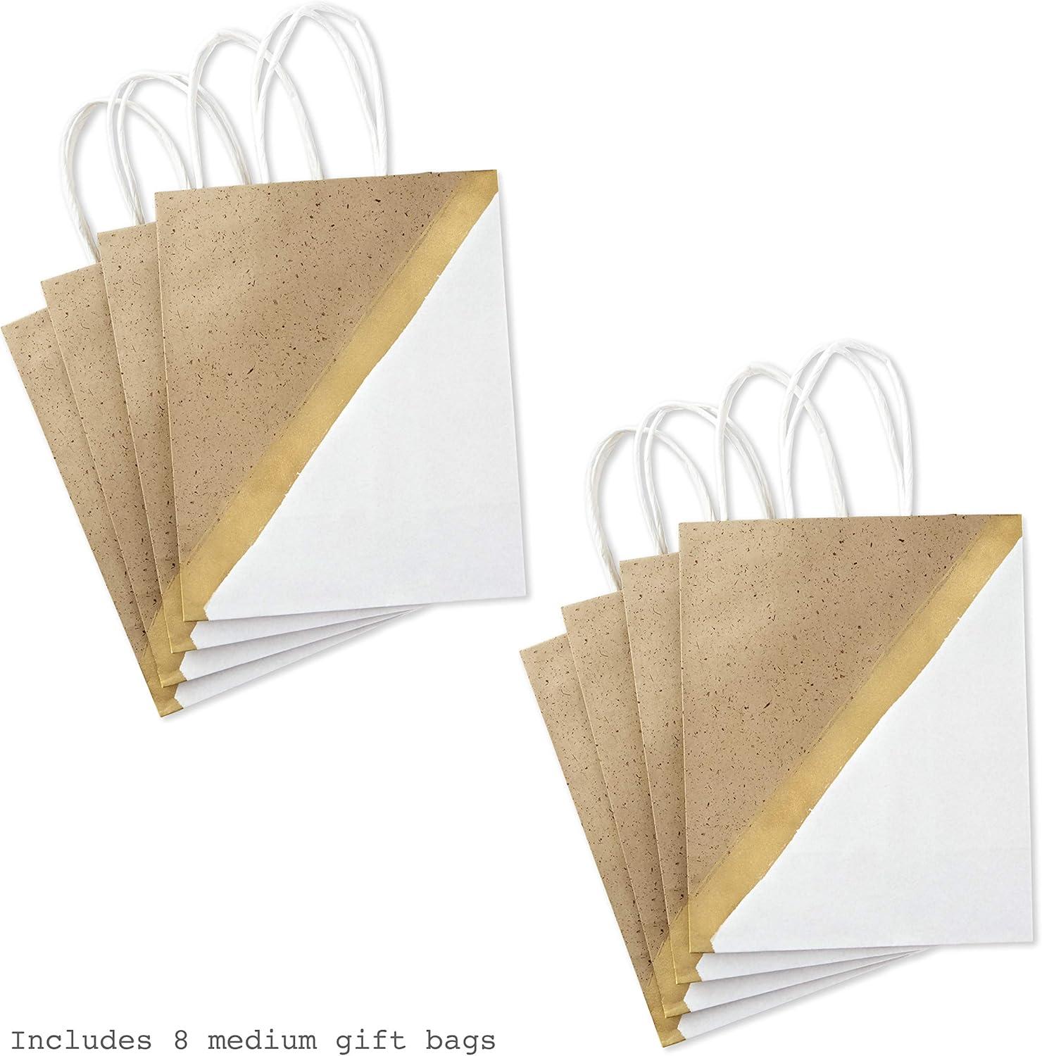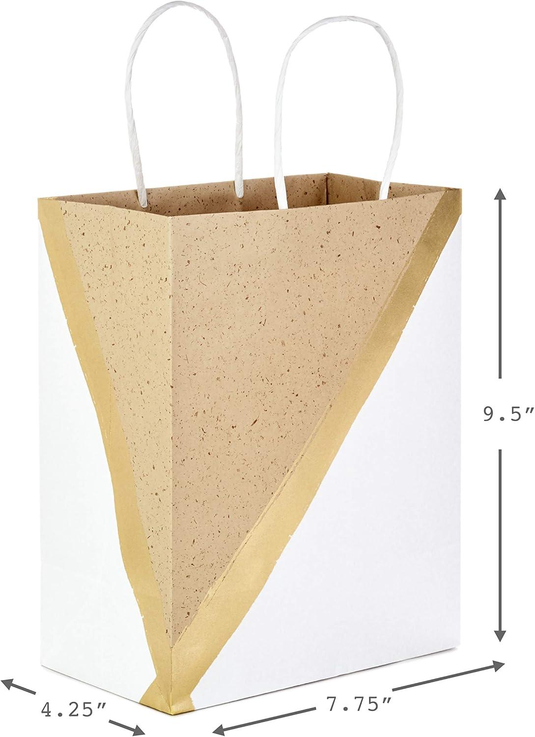 This set of 8 medium gift bags is perfect for celebrating everyday occasions and special events with friends and family. Featuring a classic white and kraft design with gold foil stripe, these gift bags are ideal to have on hand for birthdays, Valentine's Day, Galentines Day, Mother's Day, May Day, baby showers, bridal showers, weddings, graduations, care packages and more. Medium paper bags measure about 7.7″ x 9.6″ x 4.3″. The Hallmark brand is widely recognized as the very best for greeting cards, gift wrap, and more. For more than 100 years, Hallmark has been helping its customers make everyday moments more beautiful and celebrations more joyful.