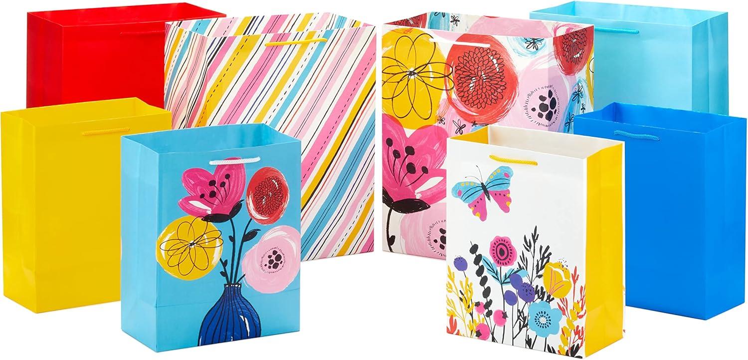 Celebrate birthdays, bridal showers, Galentine's Day, Mother's Day and more with this set of 8 assorted gift bags with handles. Pretty floral designs, stripes and solids are perfect for celebrating a variety of occasions throughout the year, and 2 sizes let you wrap gifts ranging from clothing and books to electronics and toys. The Hallmark brand is widely recognized as the very best for greeting cards, gift wrap, and more. For more than 100 years, Hallmark has been helping its customers make everyday moments more beautiful and celebrations more joyful.