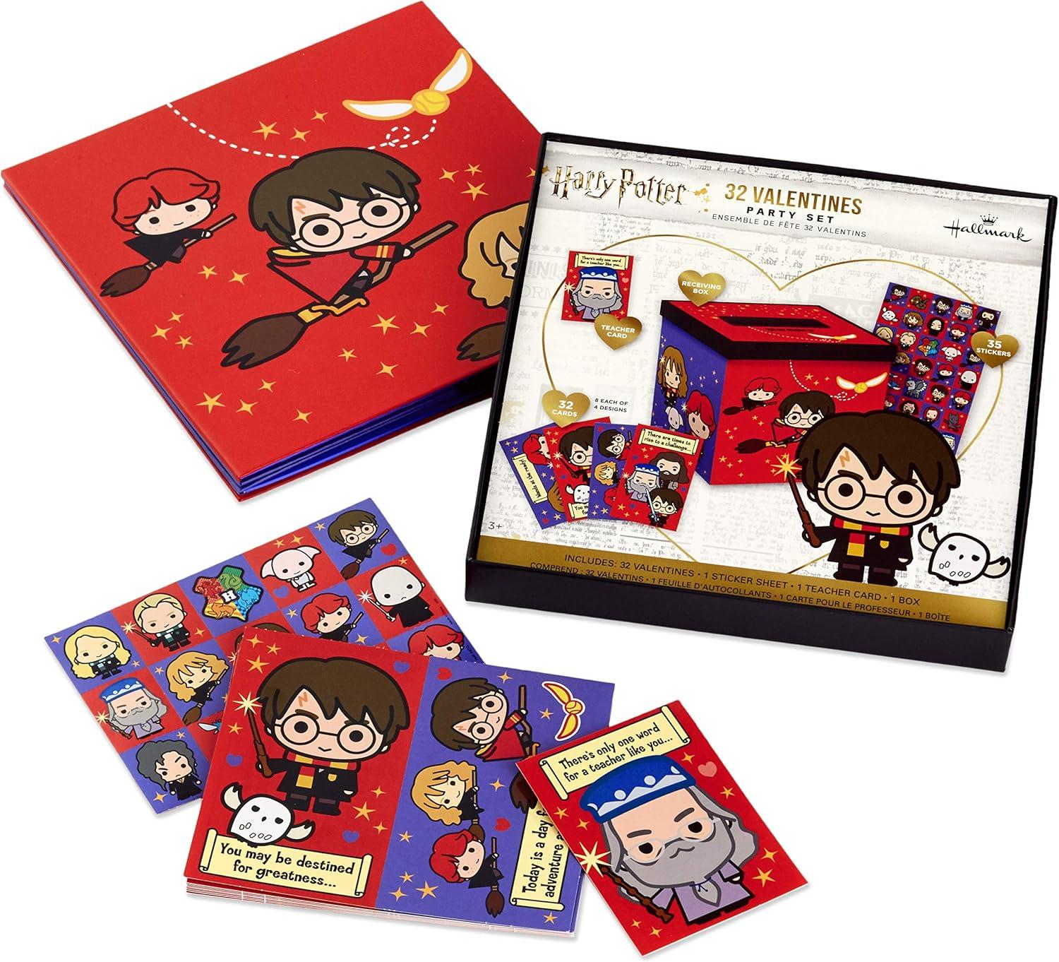 Hallmark Barbie Valentines Day Cards and Mailbox for Kids School Classroom Exchange (1 Box, 32 Valentine Cards, 1 Teacher Card)(Harry Potter)