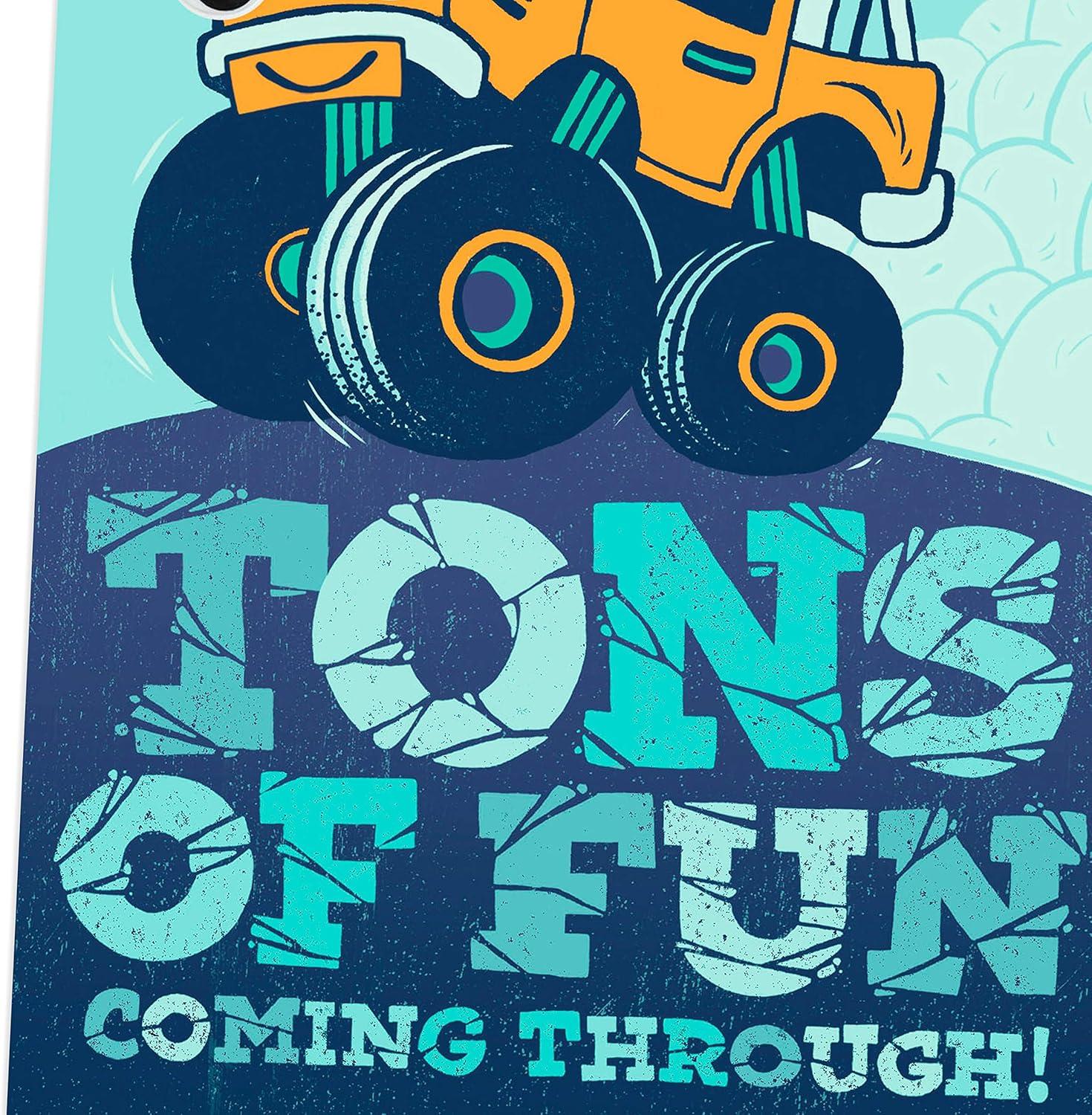 Send a cheerful greeting to a young boy on his birthday with this birthday card featuring happy-faced cartoon monster truck. The card measures 7.2 inches long by 5 inches wide made with high quality cardstock paper an envelope is included. The Hallmark brand is widely recognized as the very best for greeting cards, gift wrap, and more. For more than 100 years, Hallmark has been helping its customers make everyday moments more beautiful and celebrations more joyful.