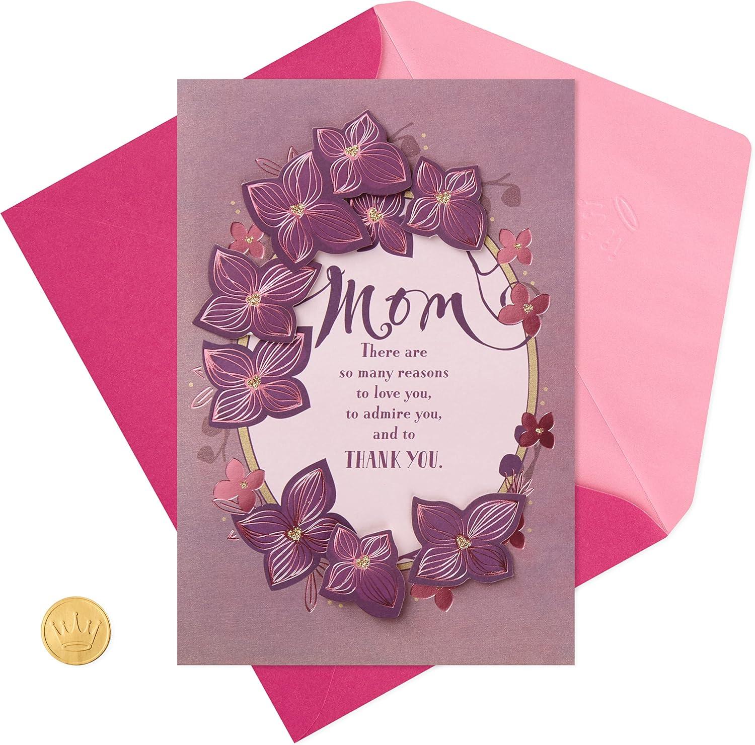 Remind your mom how much she's loved and appreciated with this sweet Valentine's Day card. With a beautiful floral wreath design and sincere message, there's plenty of room to write your own note inside to one of your favorite people. Whether you'll be together or apart on February 14th, your mom is sure to appreciate a thoughtful note from you as she celebrates the ones she loves the most. The Hallmark brand is widely recognized as the very best for greeting cards, gift wrap, and more. For more than 100 years, Hallmark has been helping its customers make everyday moments more beautiful and celebrations more joyful.